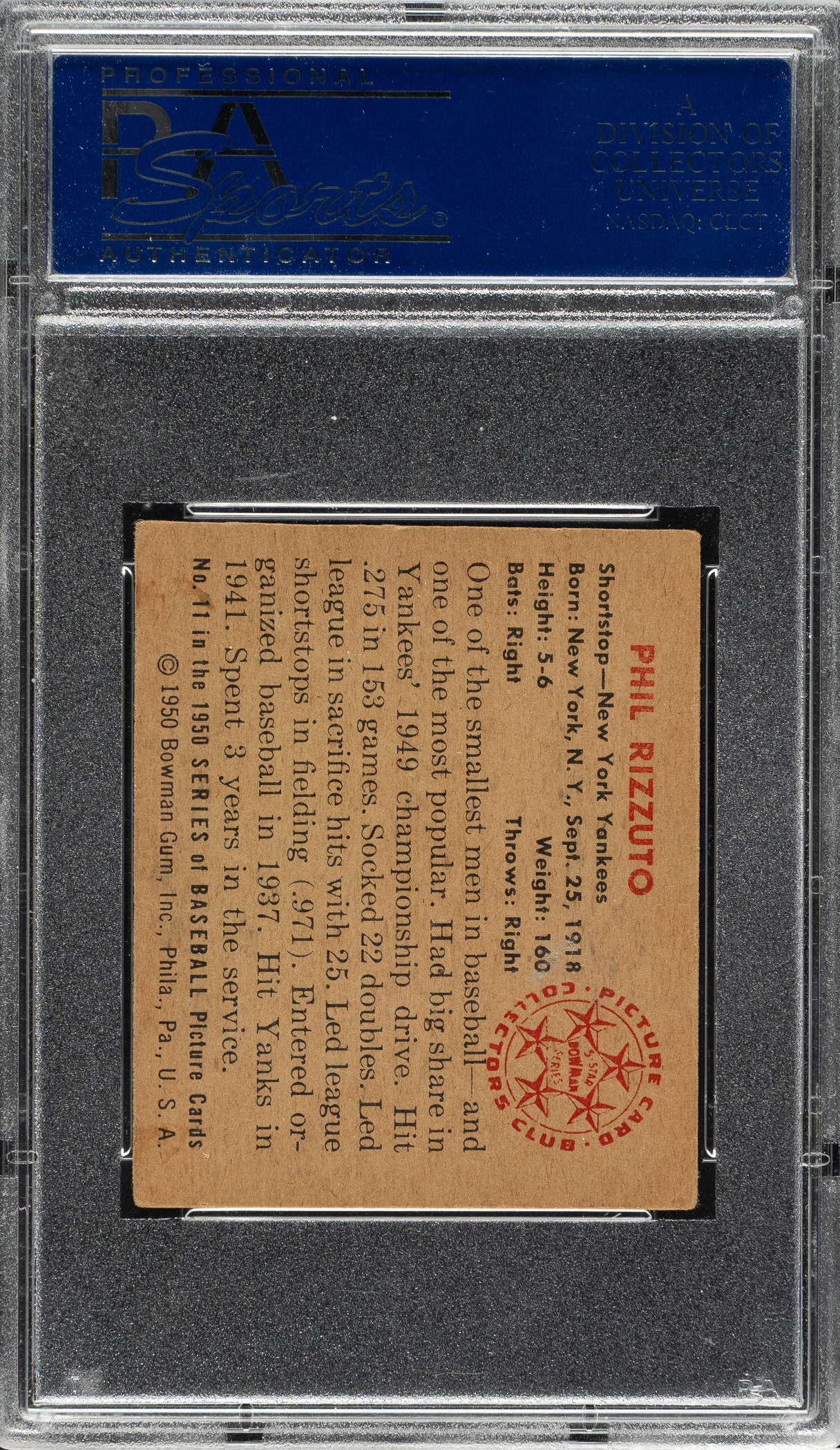Graded VG-EX 4 by PSA. New York Yankees Hall of Famer Phil Rizzuto.