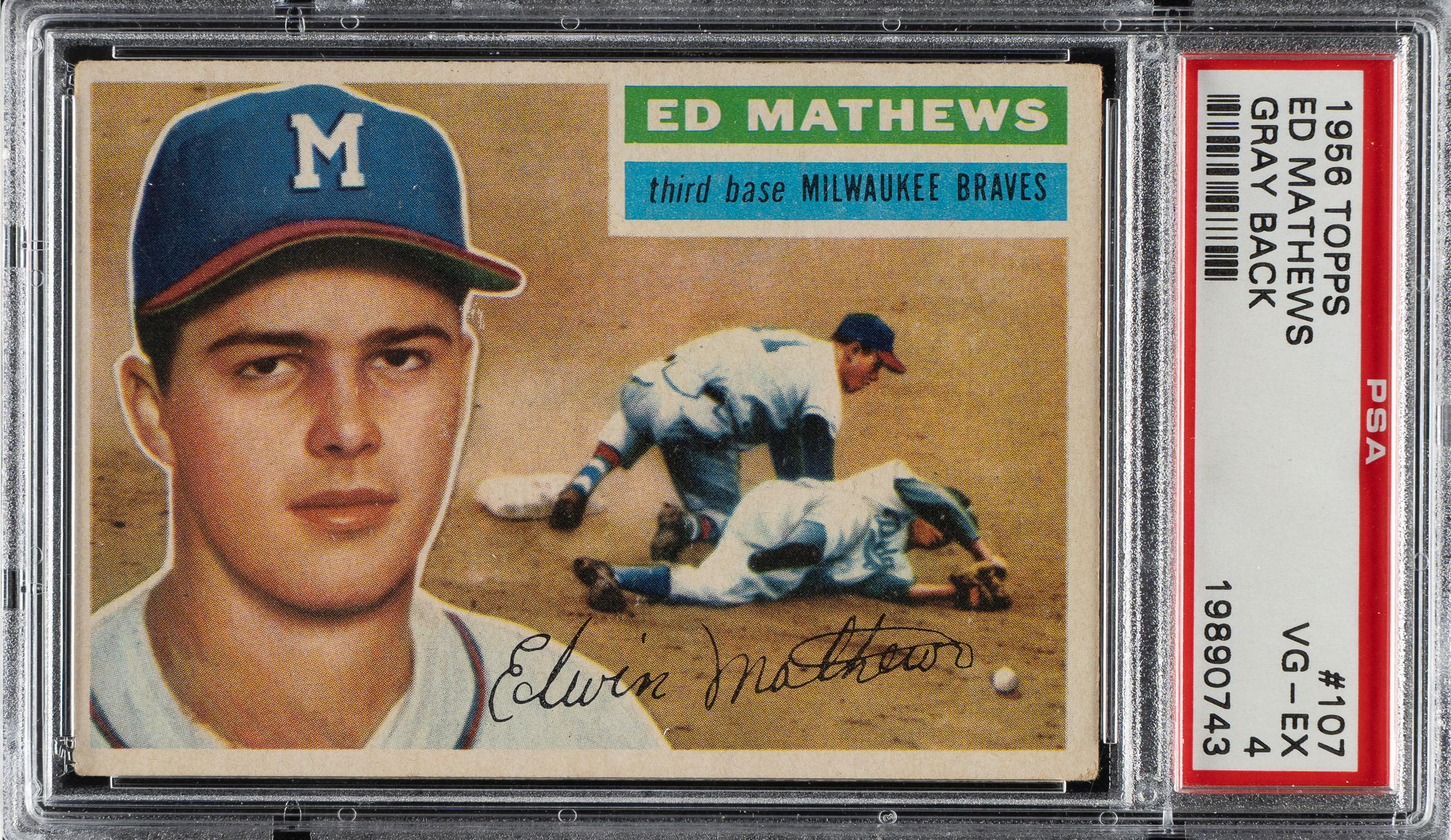 Lot # 1646: 1956 Topps #107 Ed Mathews Gray Back PSA VG-EX 4