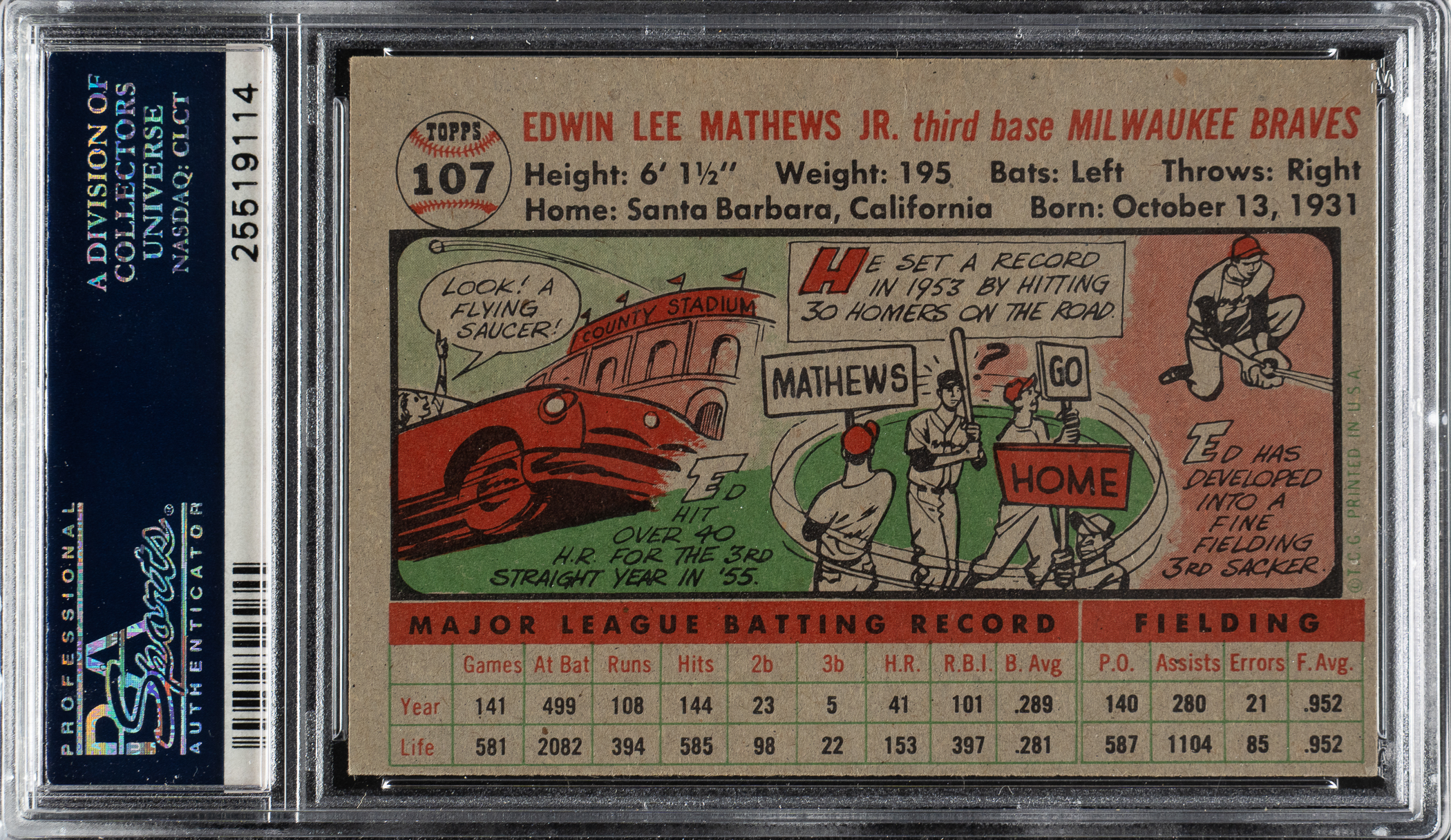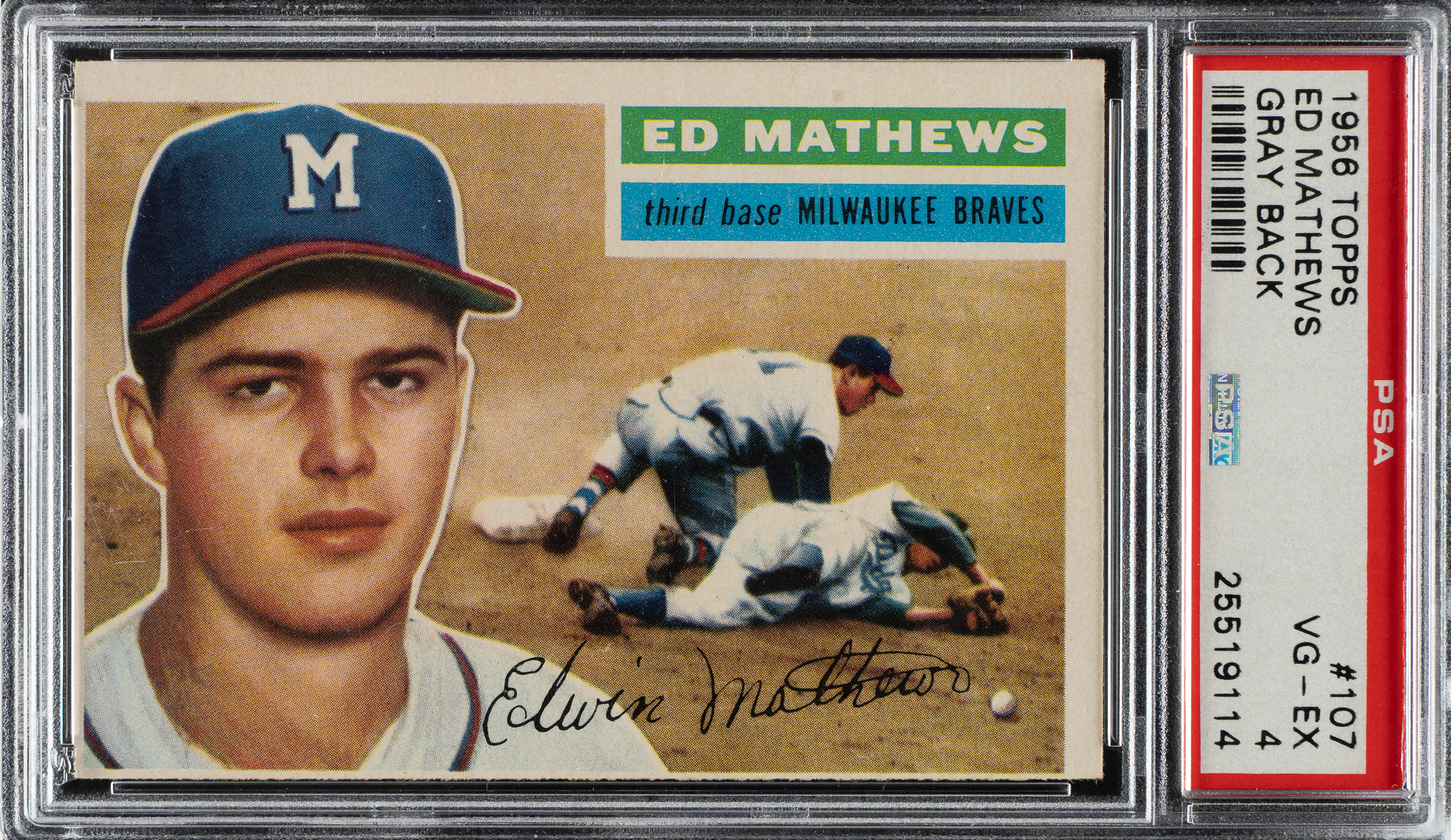Graded VG-EX 4 by PSA. Milwaukee Braves Hall of Famer Ed Mathews.