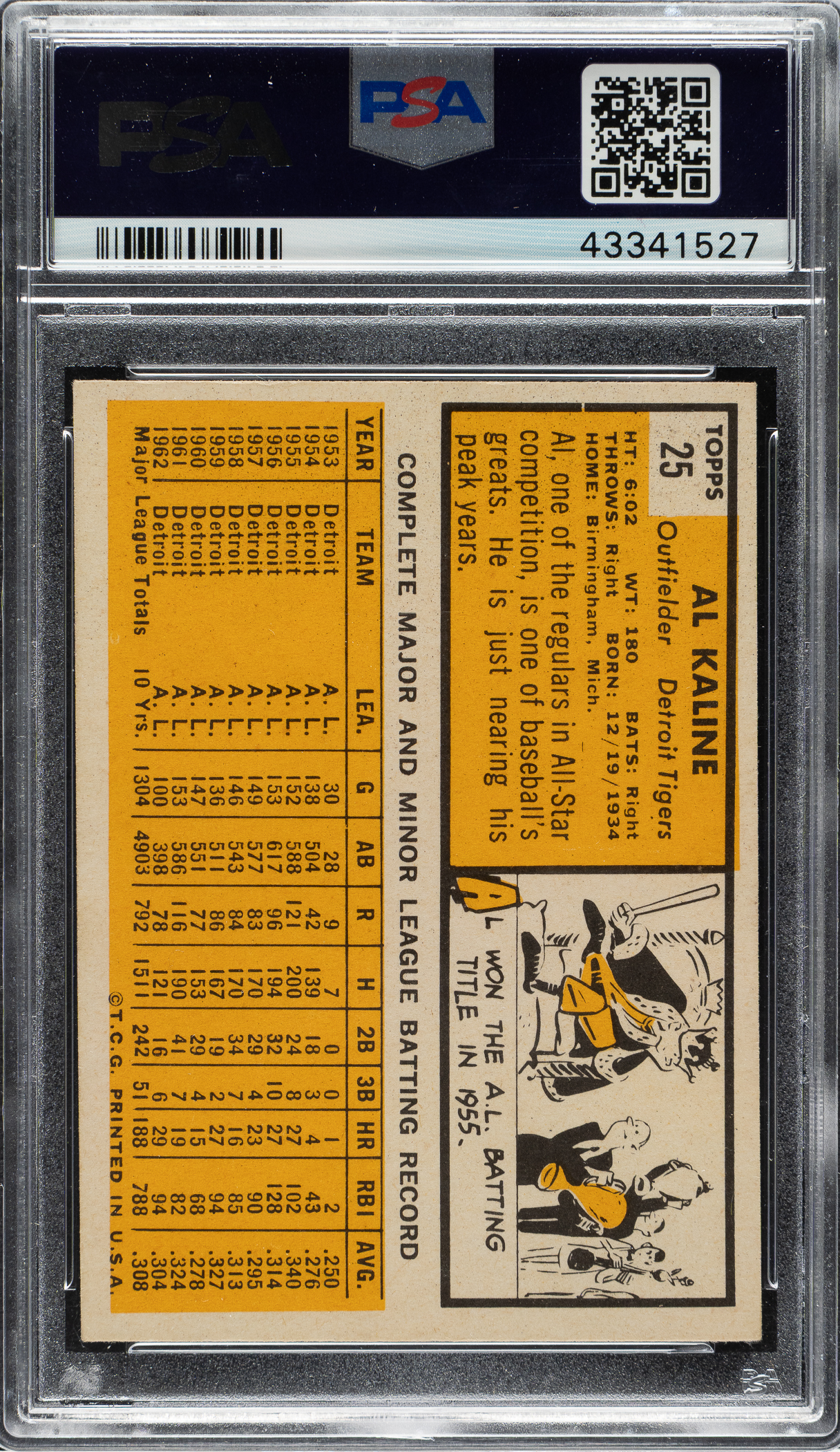 Graded EX-MT 6 by PSA. Detroit Tigers Hall of Famer Al Kaline.