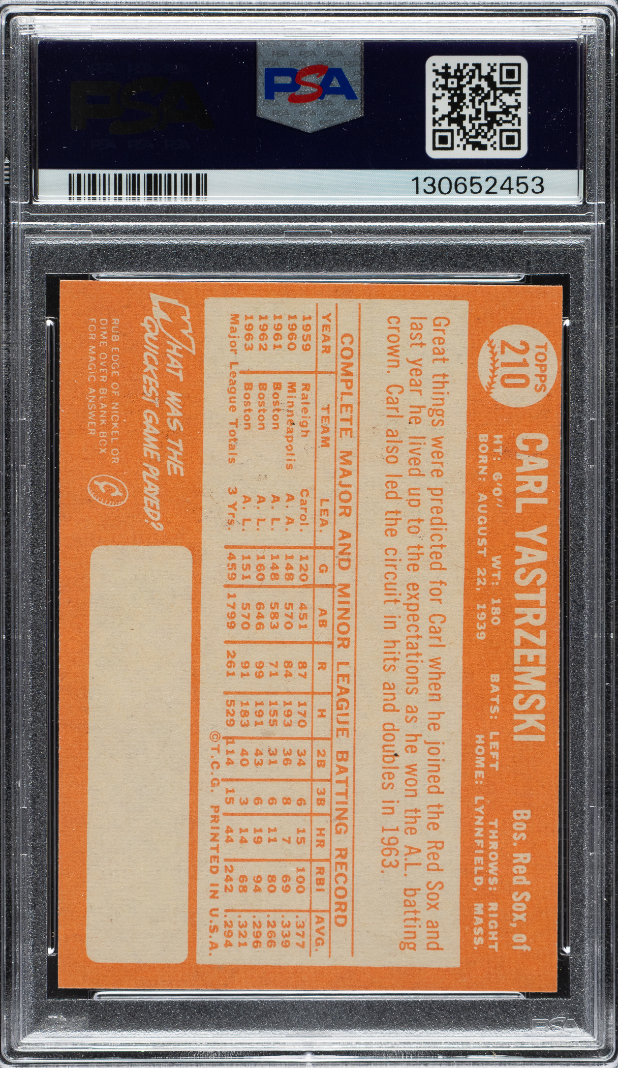 Graded EX 5 by PSA. Boston Red Sox Hall of Famer Carl Yastrzemski.