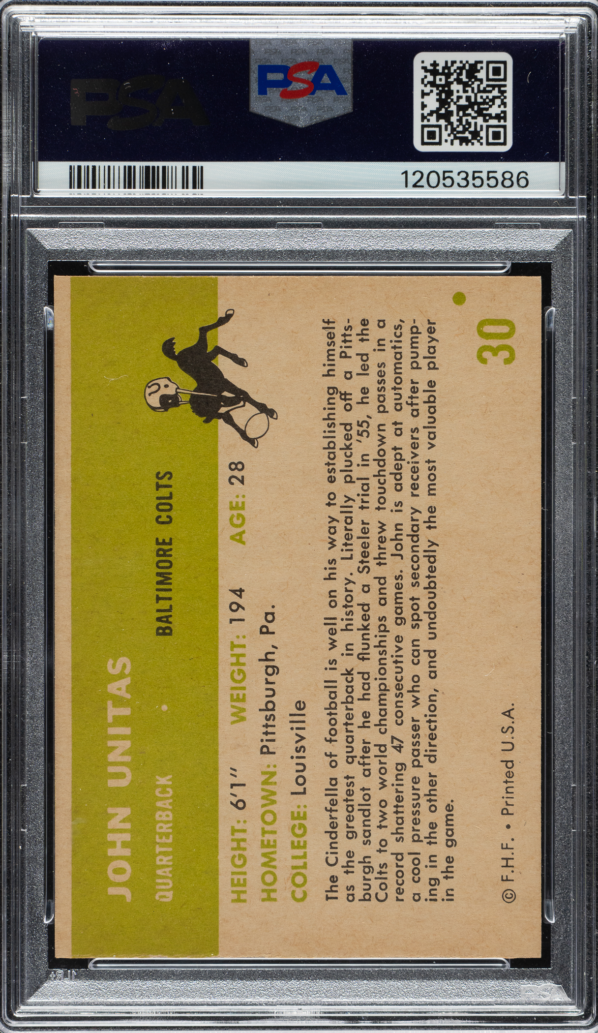 Graded NM 7 by PSA. Baltimore Colts football Hall of Famer Johnny Unitas.