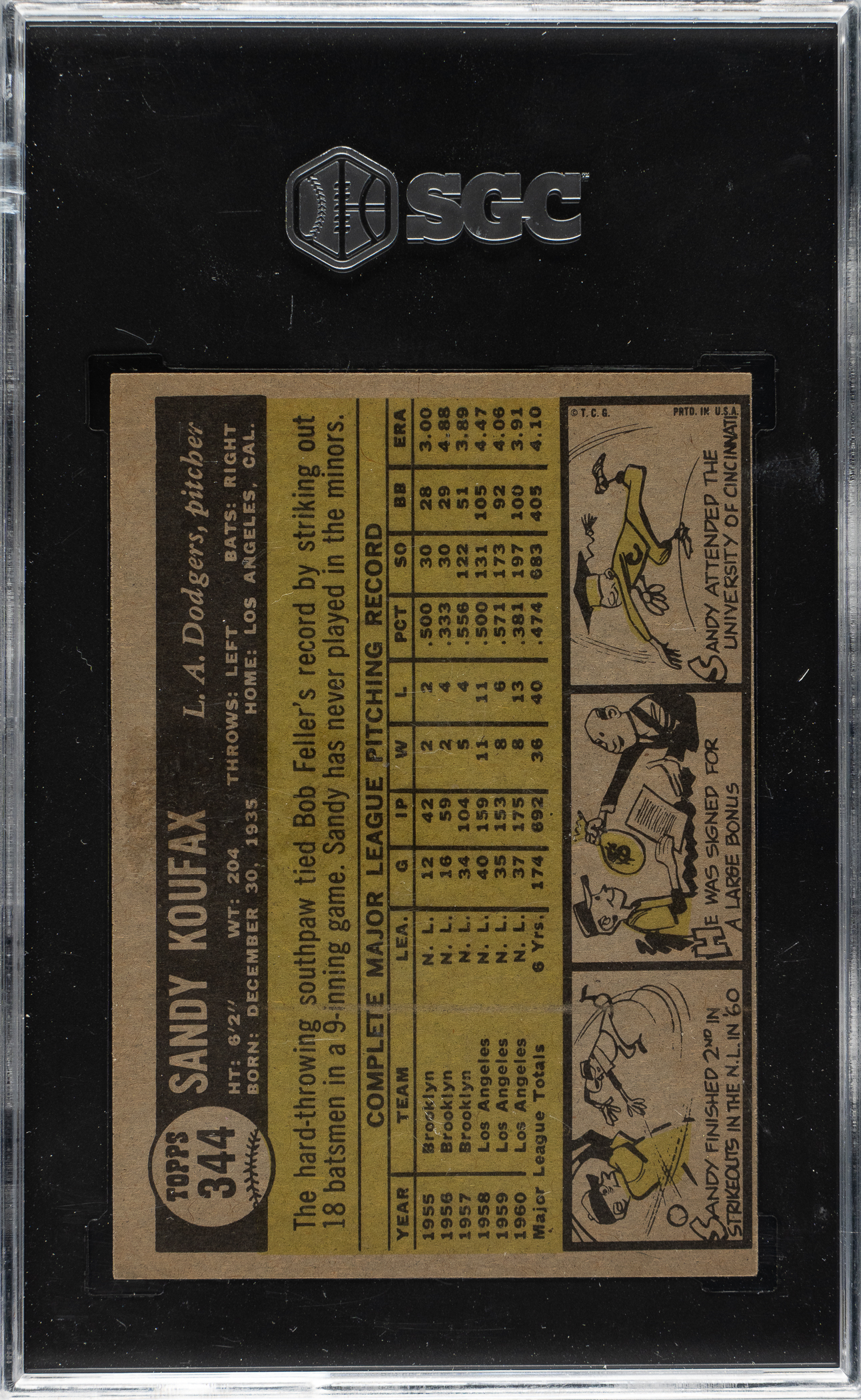 Lot # 1873: 1961 Topps #344 Sandy Koufax SGC VG/EX 4