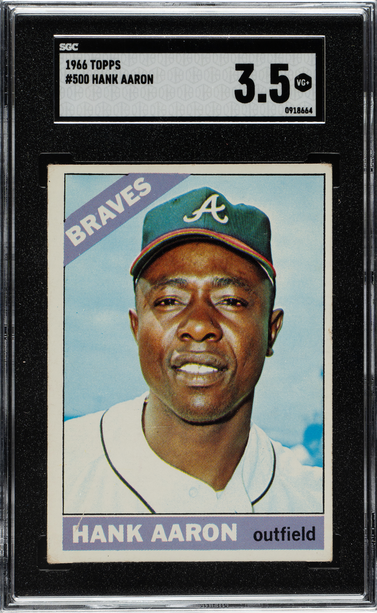 Graded VG+ 3.5 by SGC. Atlanta Braves Hall of Famer Hank Aaron.