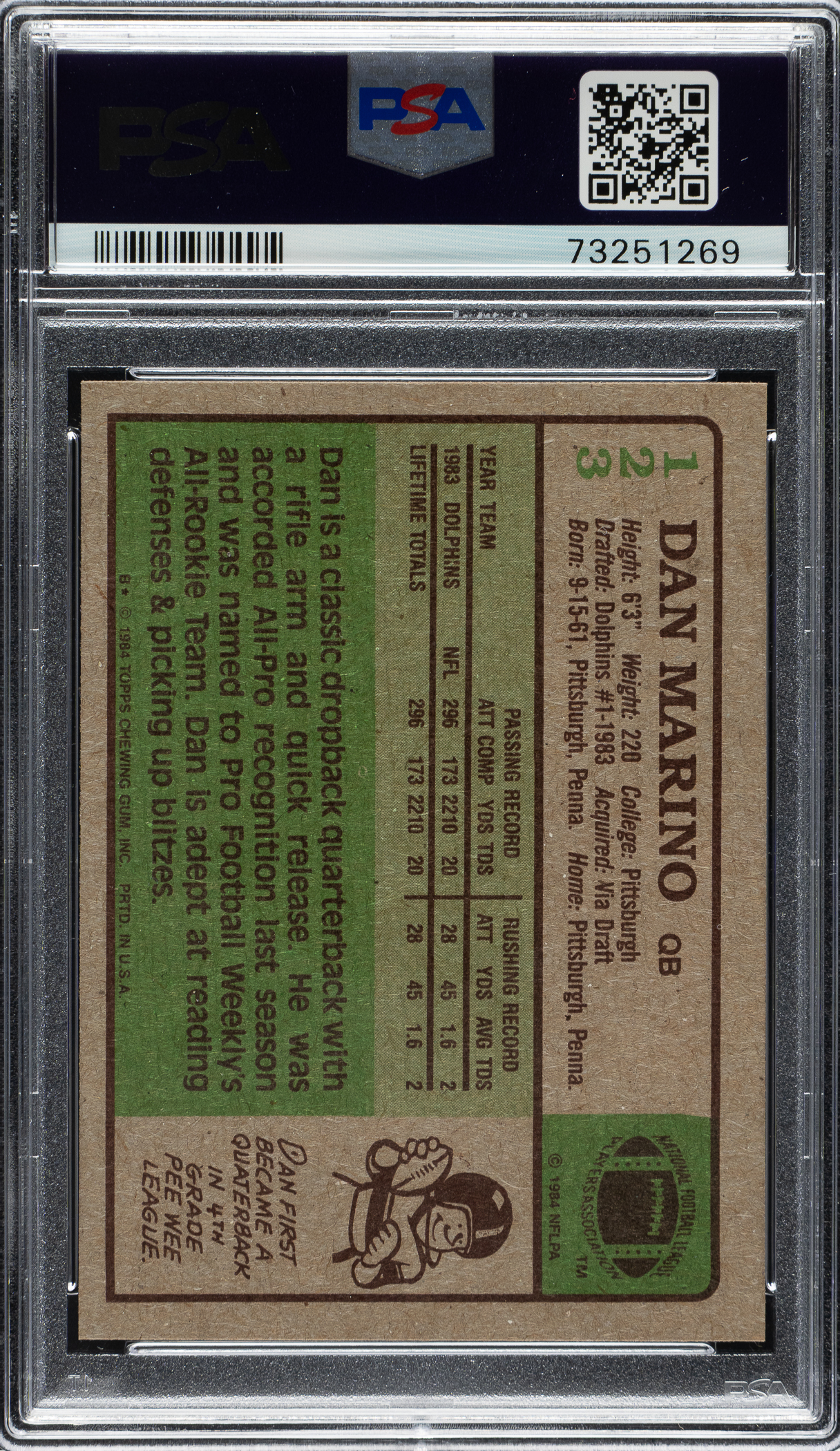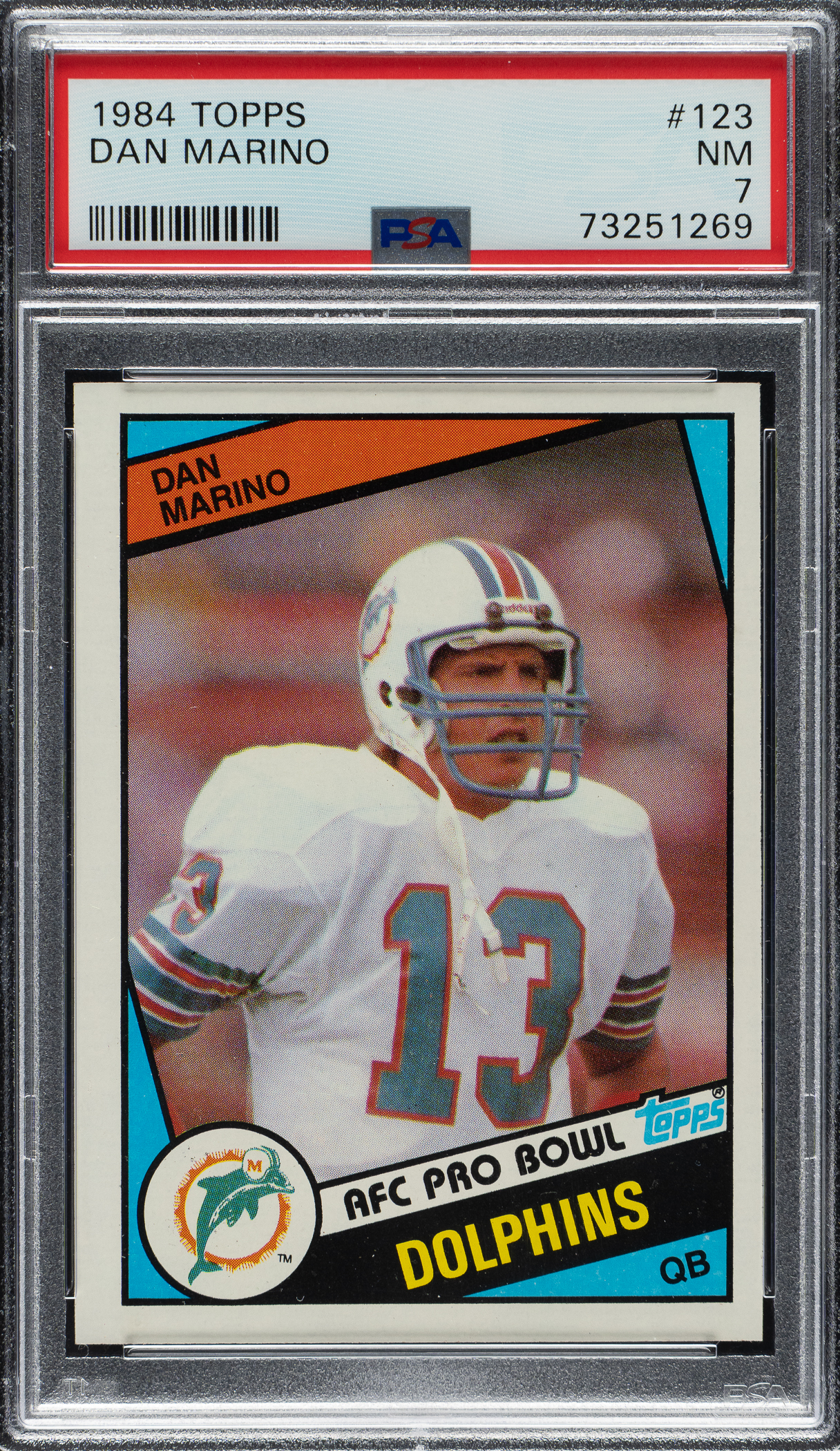 Graded NM 7 by PSA. Miami Dolphins football Hall of Famer Dan Marino.
