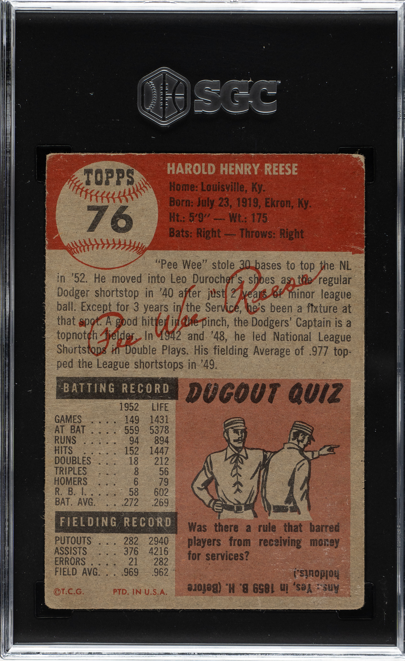 Graded FAIR 1.5 by SGC. Brooklyn Dodgers Hall of Famer Pee Wee Reese.