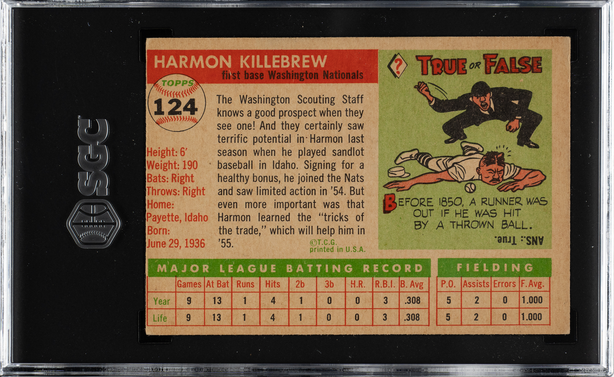 Graded GOOD+ 2.5 by SGC. Washington Senators Hall of Famer Harmon Killebrew.