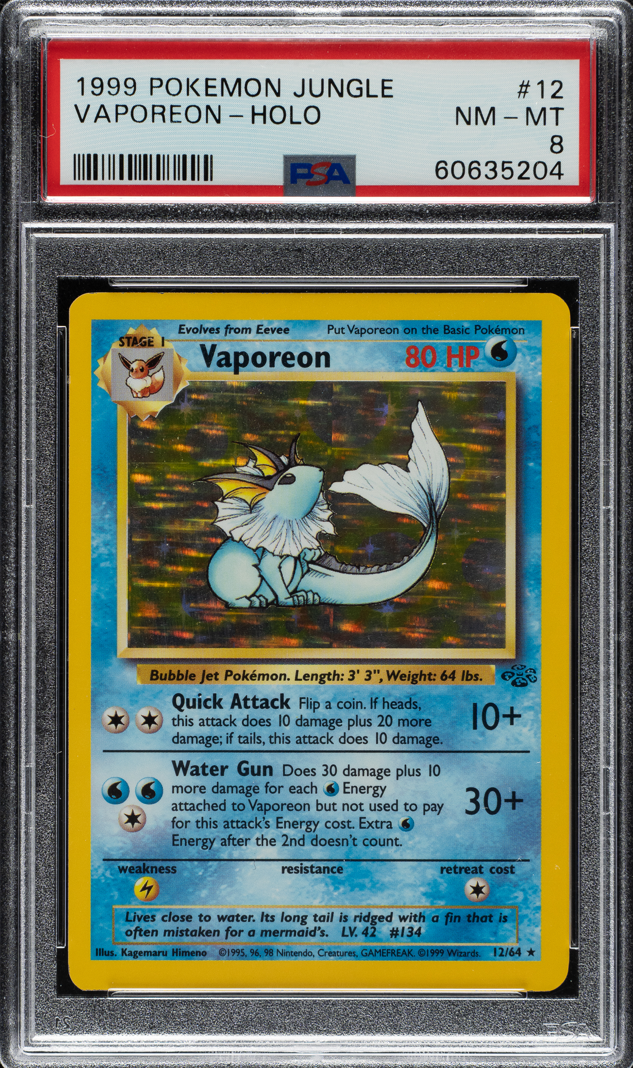Lot # 3485: 1999 Pokemon Jungle #12 Vaporeon Holographic PSA NM-MT 8