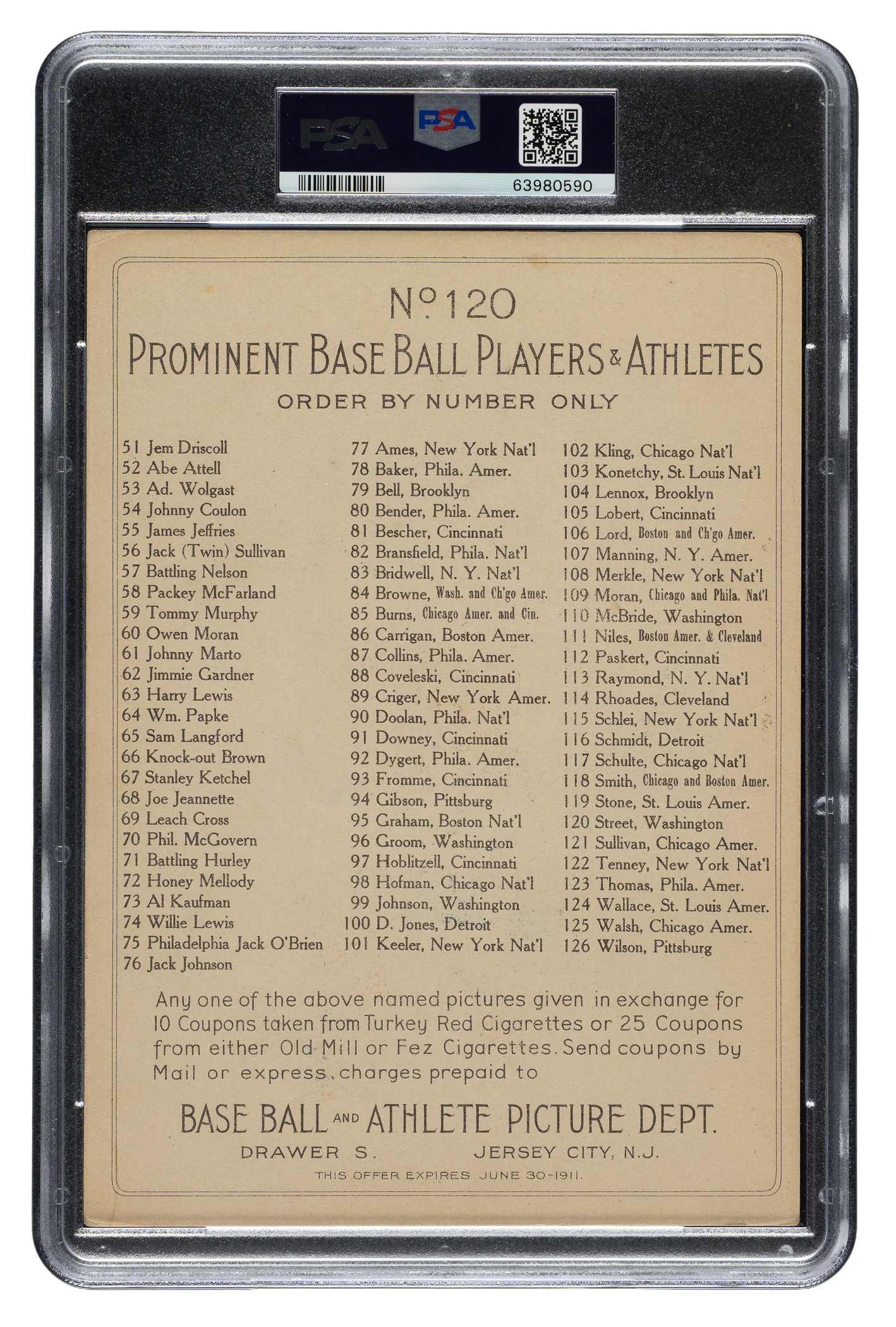 Lot # 814: 1911 T3 Turkey Red #120 Gabby Street PSA VG 3