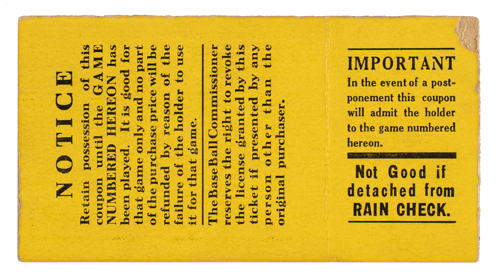 Ticket stub issued for Game 2 of the 1923 World Series between the New York Giants and New York Yankees at the Polo Grounds. Babe Ruth drove in a pair of runs as the Yankees defeated the Giants 4-2. The ticket stub (2.25 x 4.25 inches), which is for a "Lower Stand Res." seat, is in Good to Very Good condition overall.
