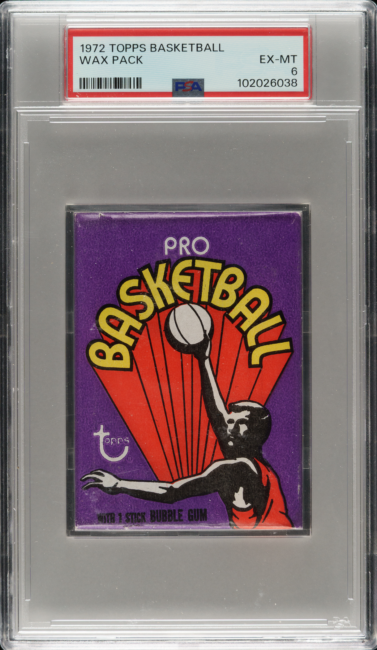 Lot # 2650: 1972-1973 Topps Basketball Unopened Wax Pack PSA EX-MT 6
