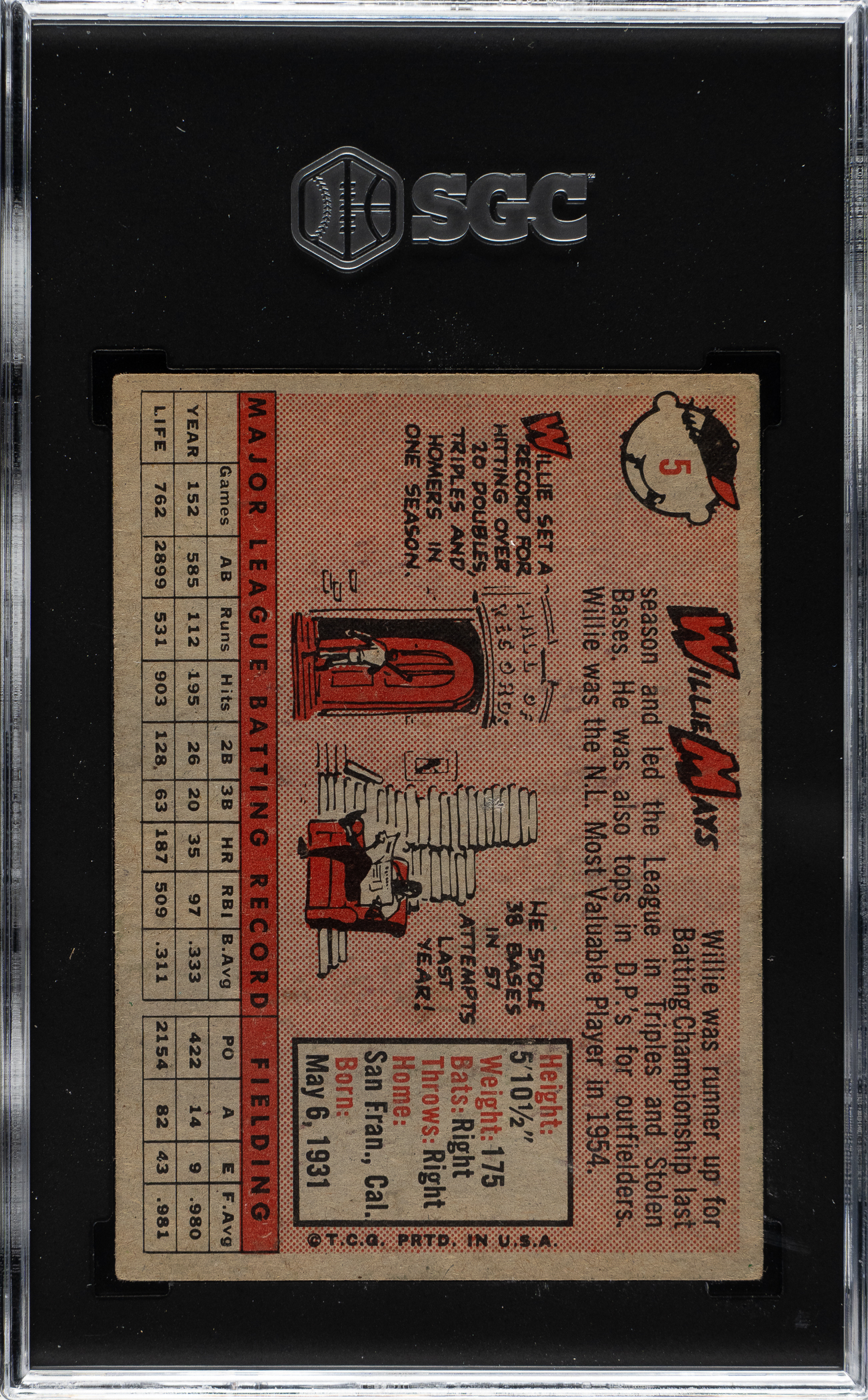 Graded EX 5 by SGC. San Francisco Giants Hall of Famer Willie Mays.