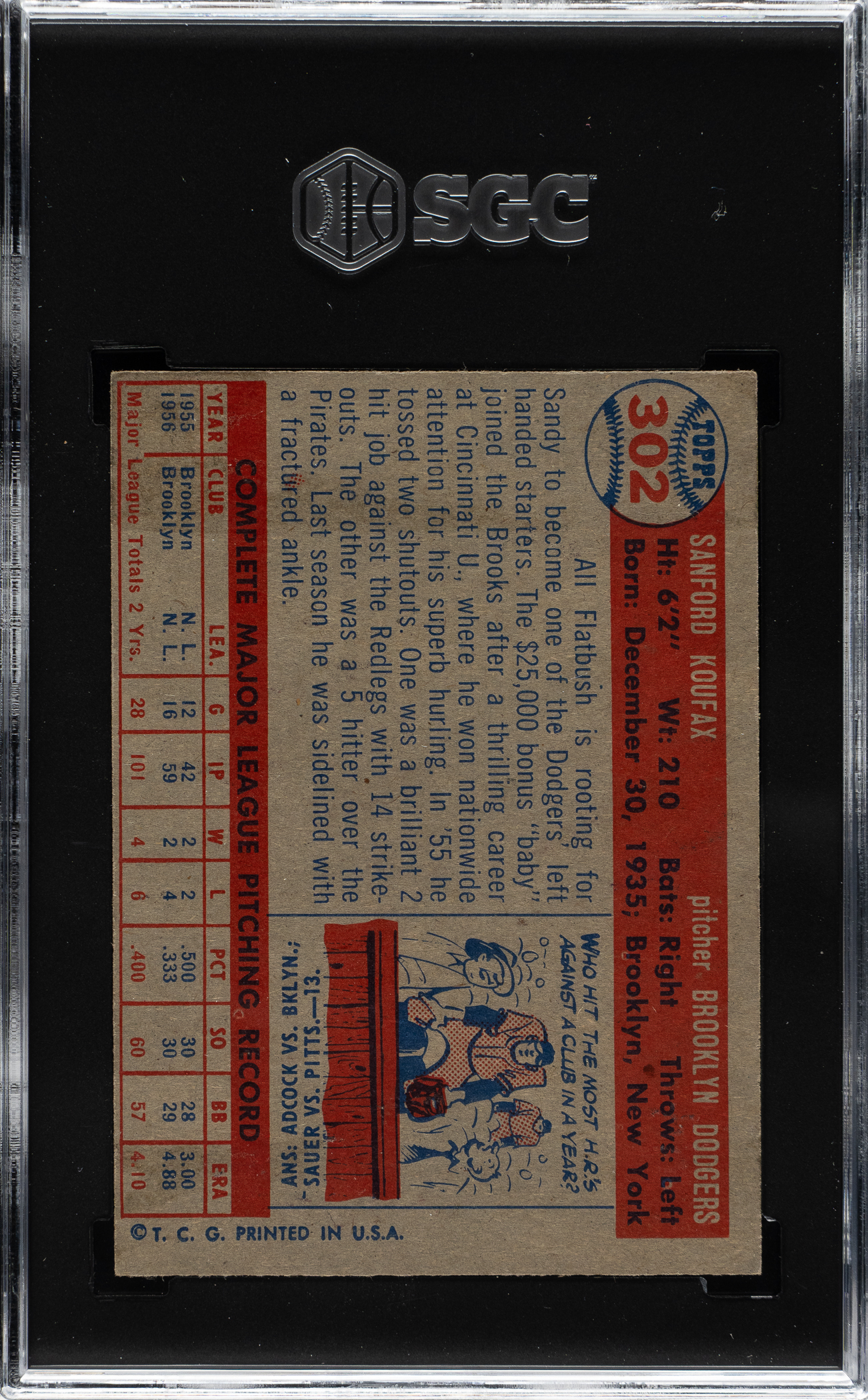 Graded EX 5 by SGC. Brooklyn Dodgers Hall of Famer Sandy Koufax.