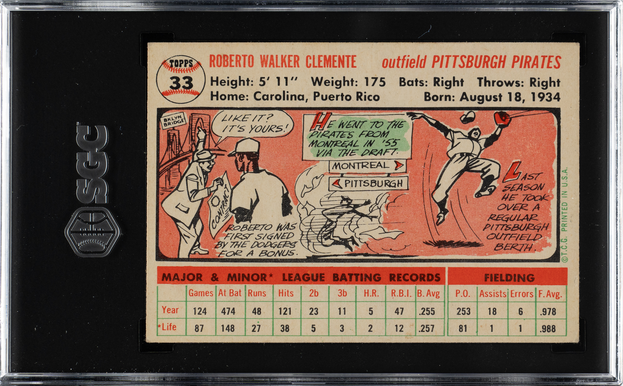 1955 Topps #164 Roberto Clemente Rookie SGC Authentic