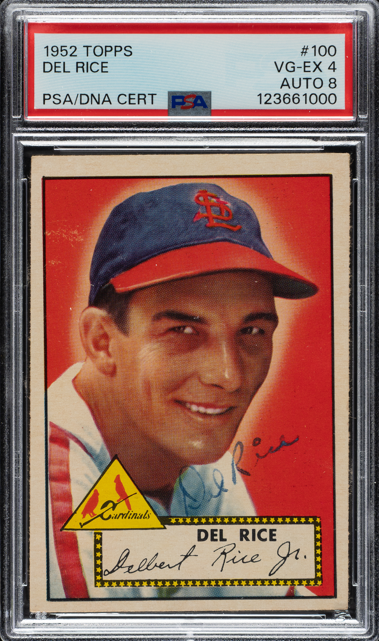PSA/DNA has encapsulated the card, grading the signature NM-MT 8 and the card VG-EX 4. St. Louis Cardinals.