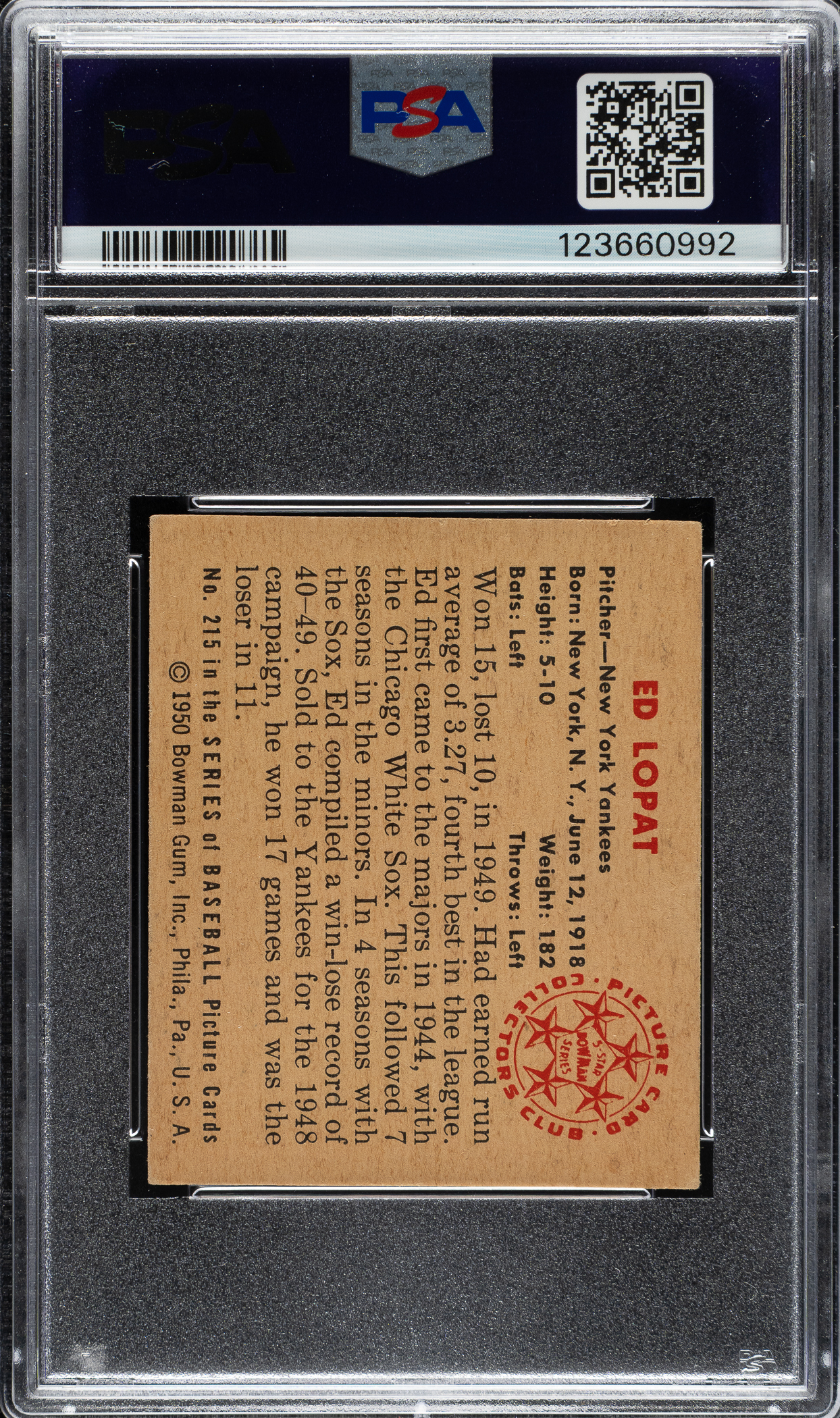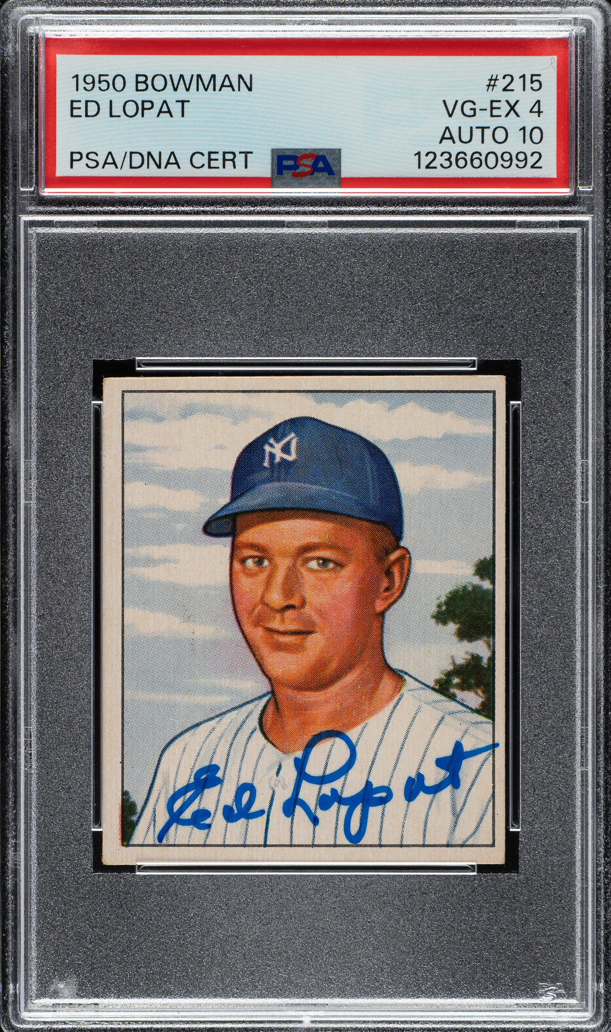 PSA/DNA has encapsulated the card, grading the signature GEM MINT 10 and the card VG-EX 4. New York Yankees.