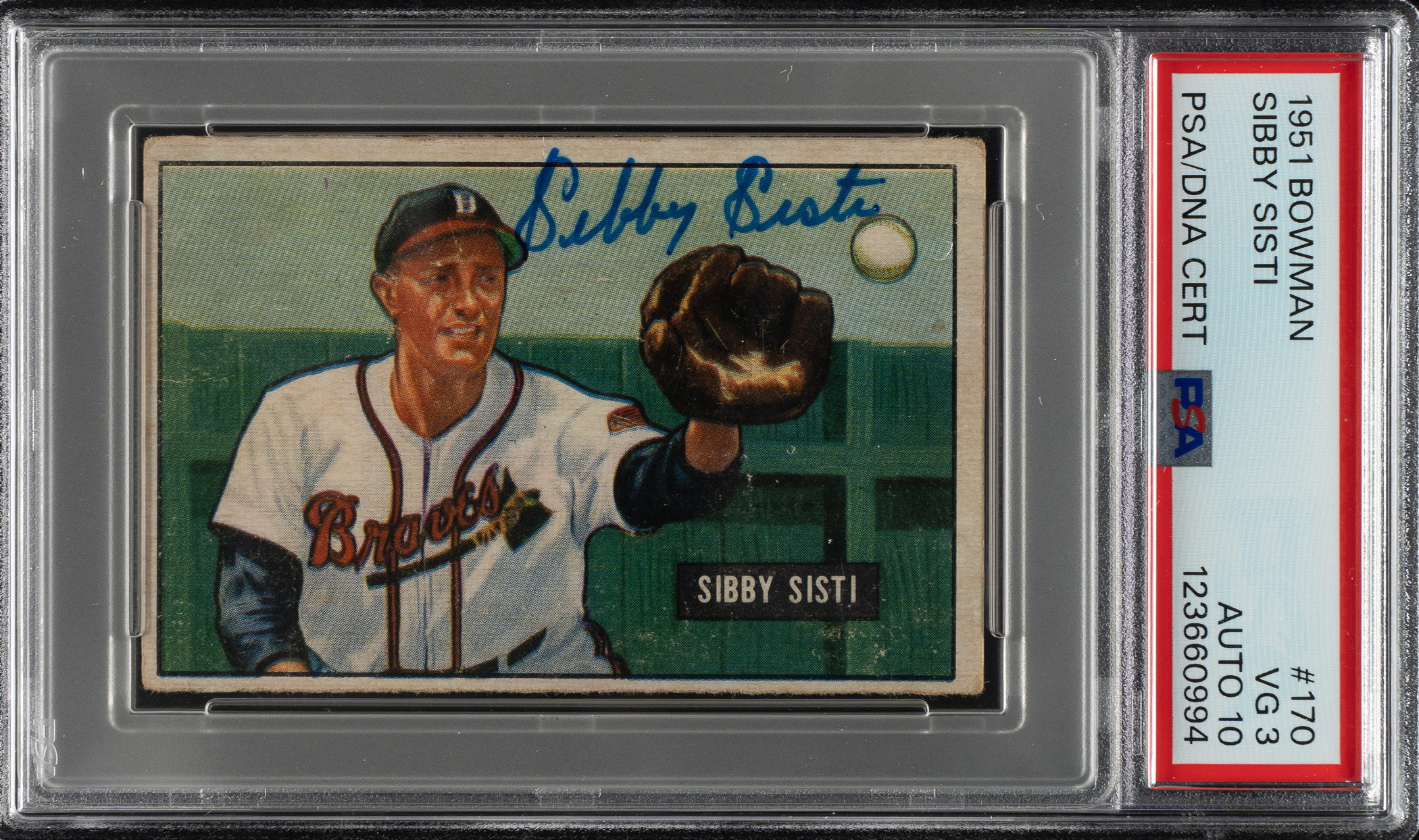 PSA/DNA has encapsulated the card, grading the signature GEM MINT 10 and the card VG 3. Boston Braves.