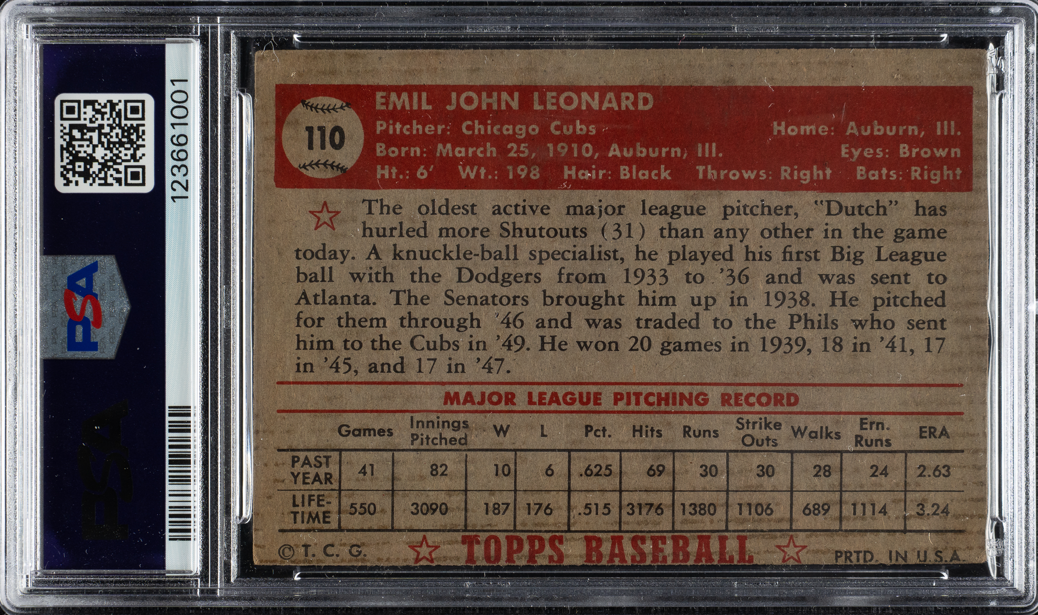 PSA/DNA has encapsulated the card, grading the signature GEM MINT 10 and the card VG 3. Chicago Cubs.