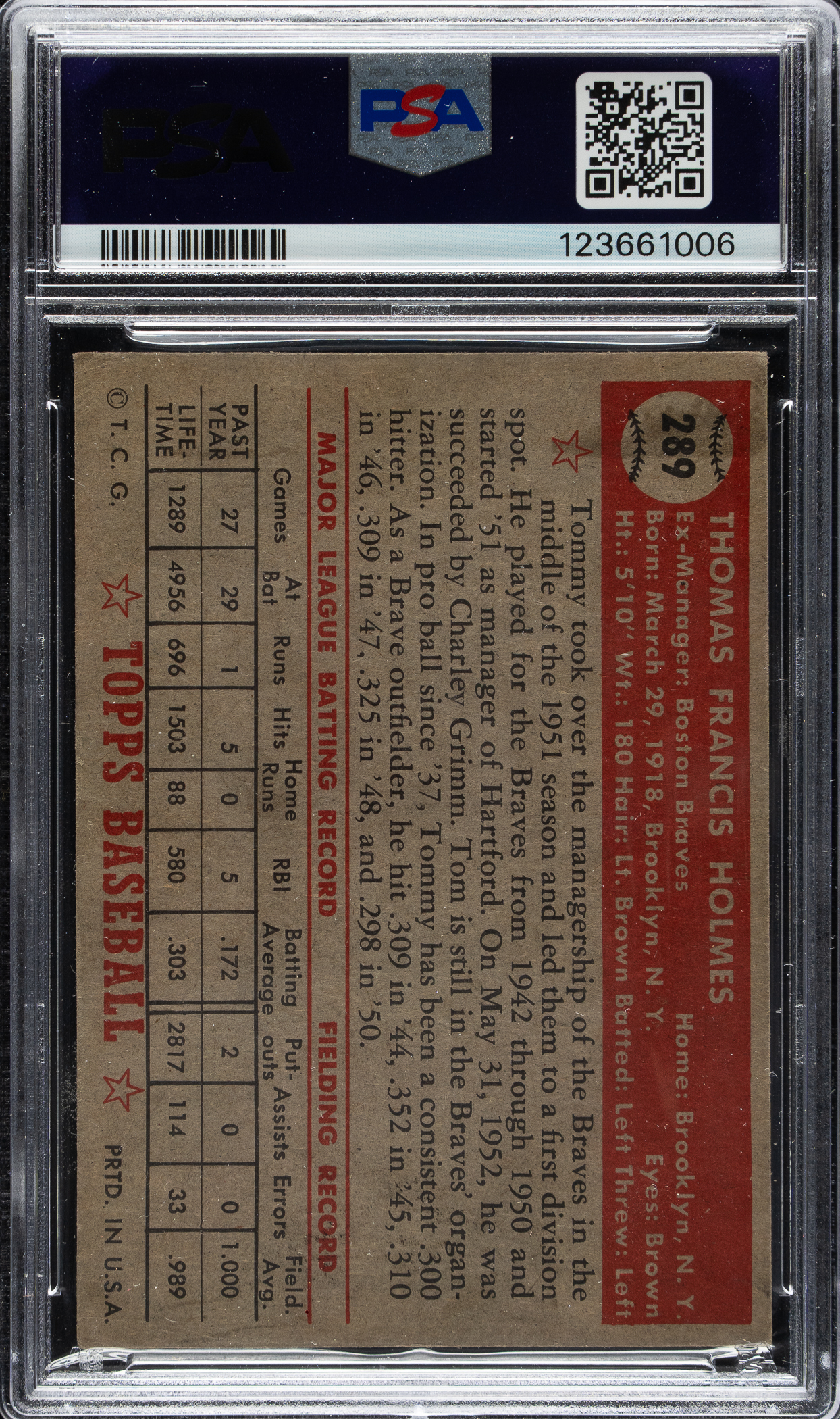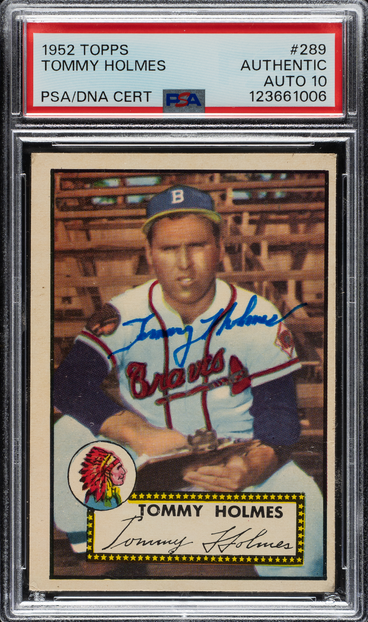 PSA/DNA has encapsulated the card, grading the signature GEM MINT 10. Boston Braves.