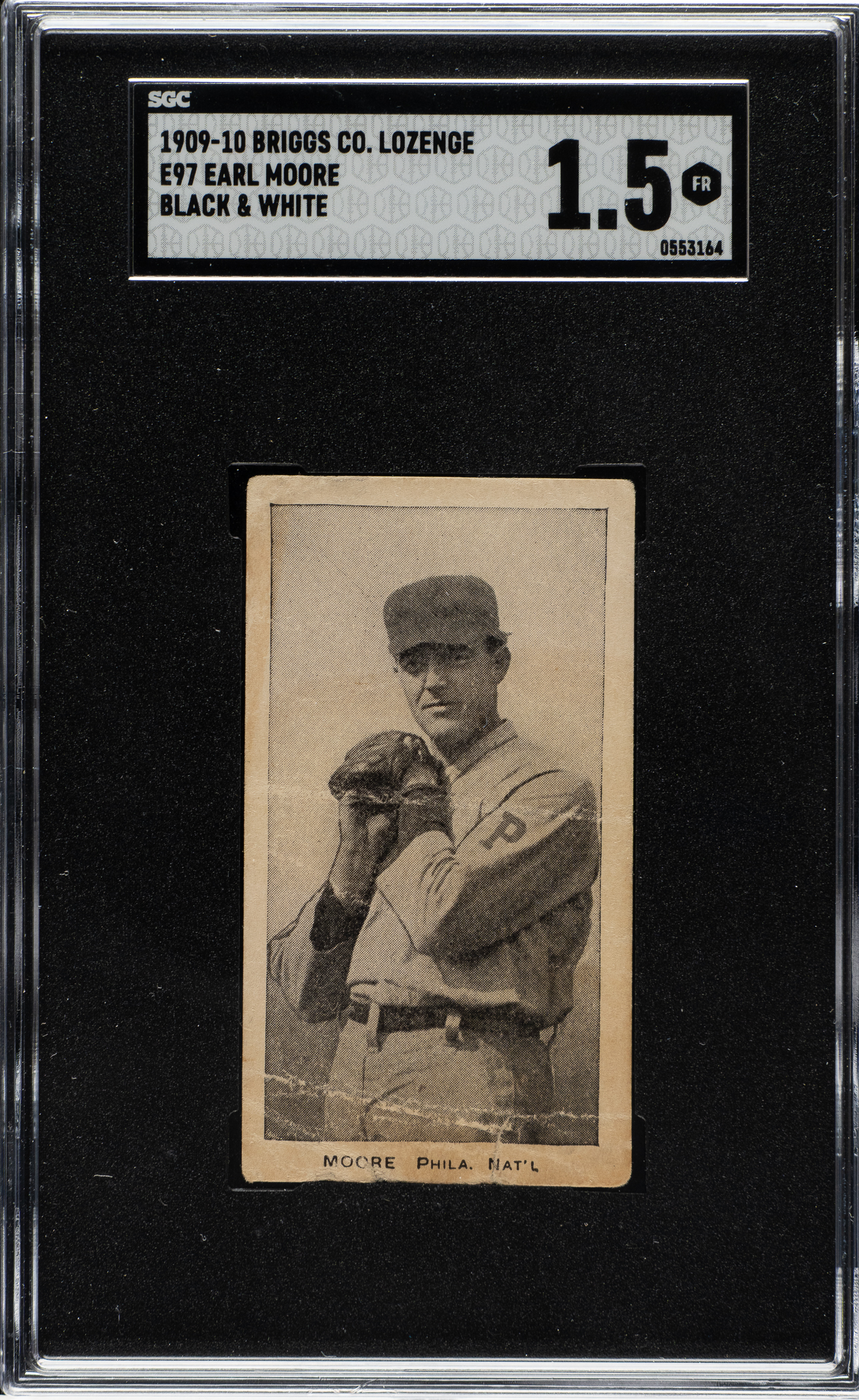Lot # 75: 1909-1910 E97 C. A. Briggs Co. Black-and-White "Proof" Earl Moore SGC FAIR 1.5