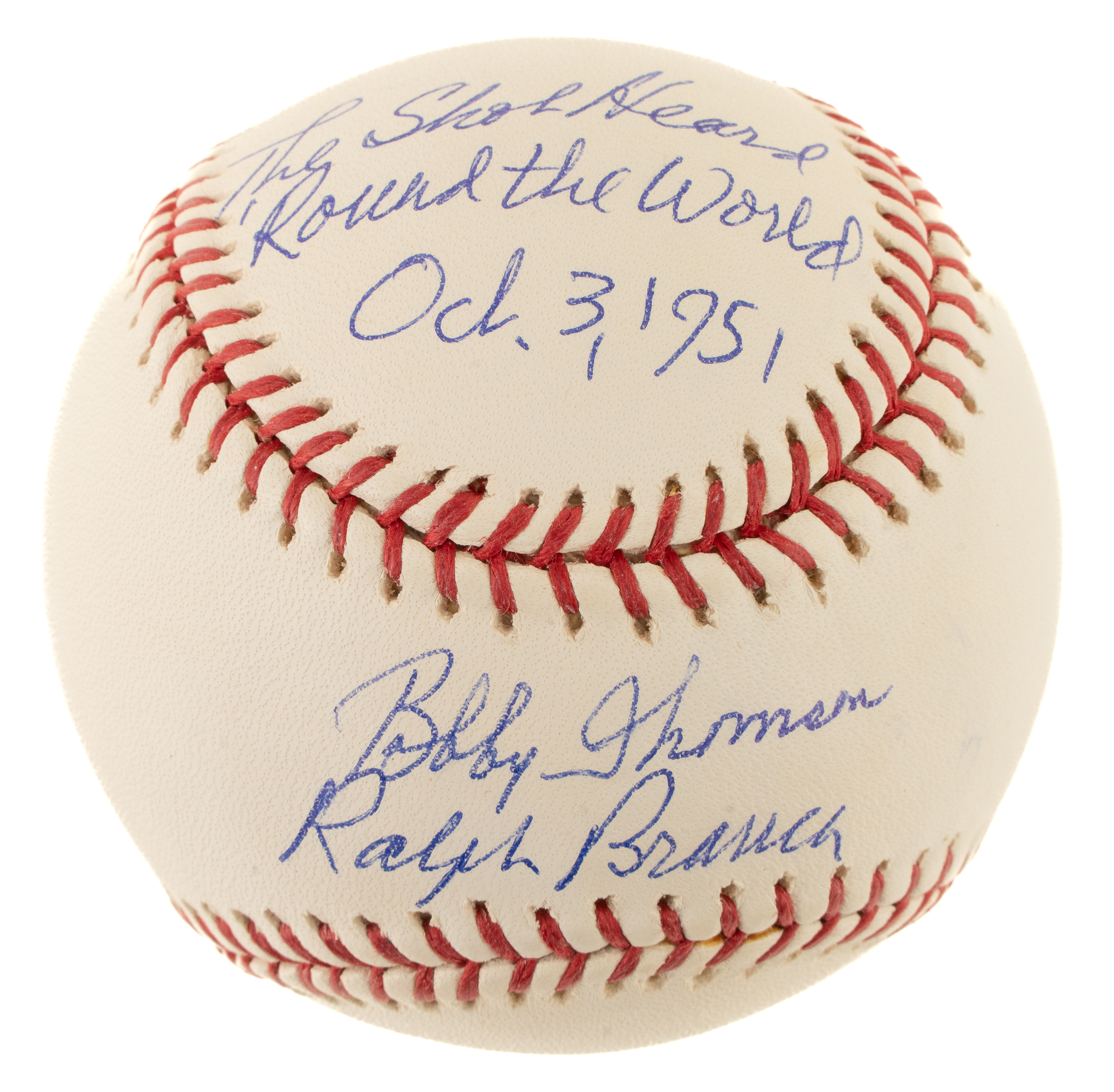 Bobby Thomson and Ralph Branca dual-signed baseball. PSA/DNA certification sticker is affixed to the baseball.