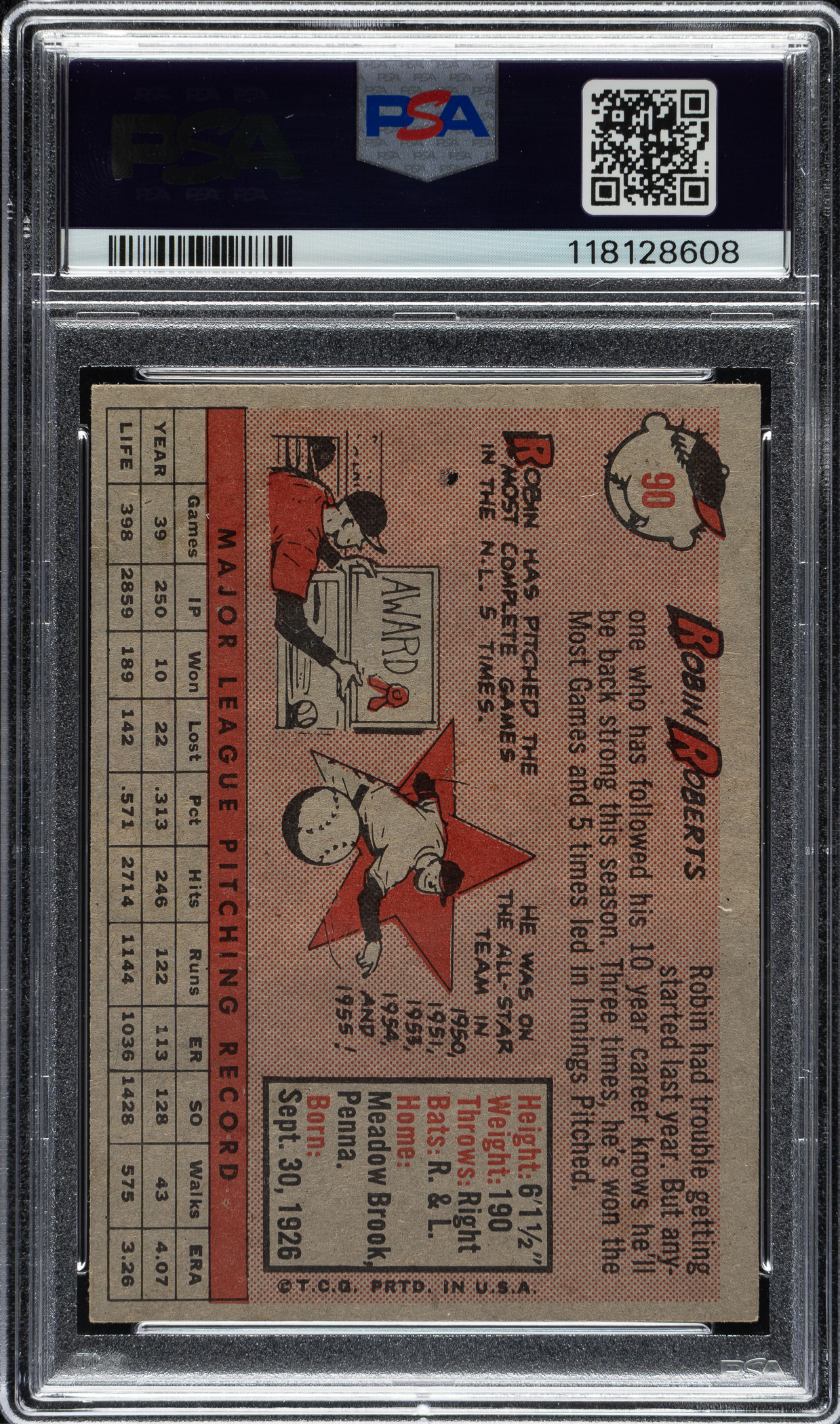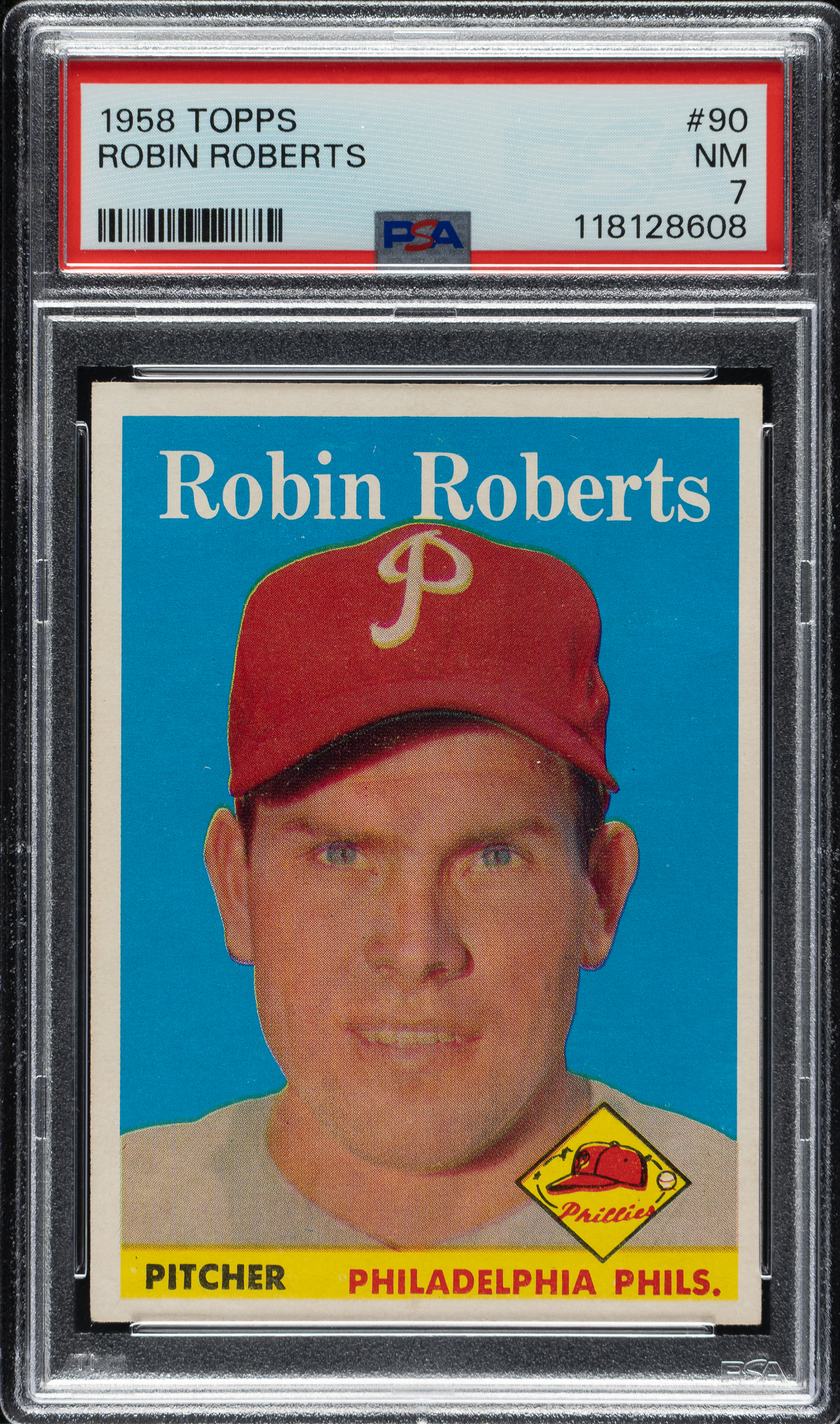 Graded NM 7 by PSA. Philadelphia Phillies Hall of Famer Robin Roberts.