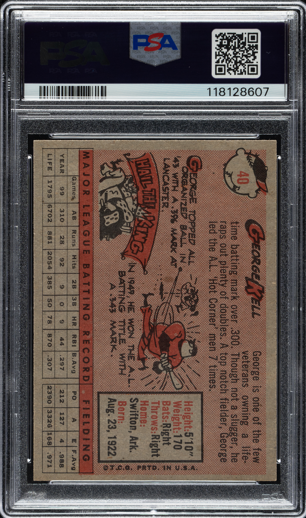 Graded NM-MT+ 8.5 by PSA. Baltimore Orioles Hall of Famer George Kell.