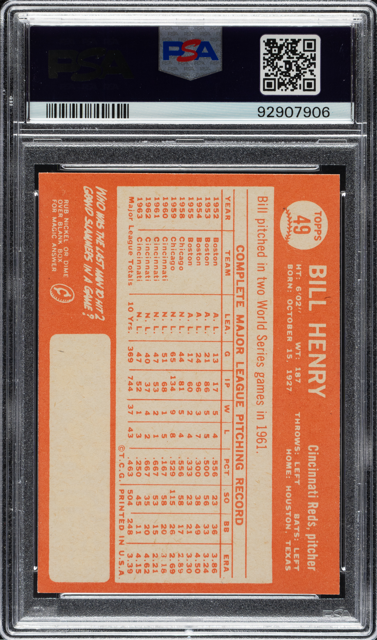 Lot # 1980: 1964 Topps #49 Bill Henry PSA NM-MT 8
