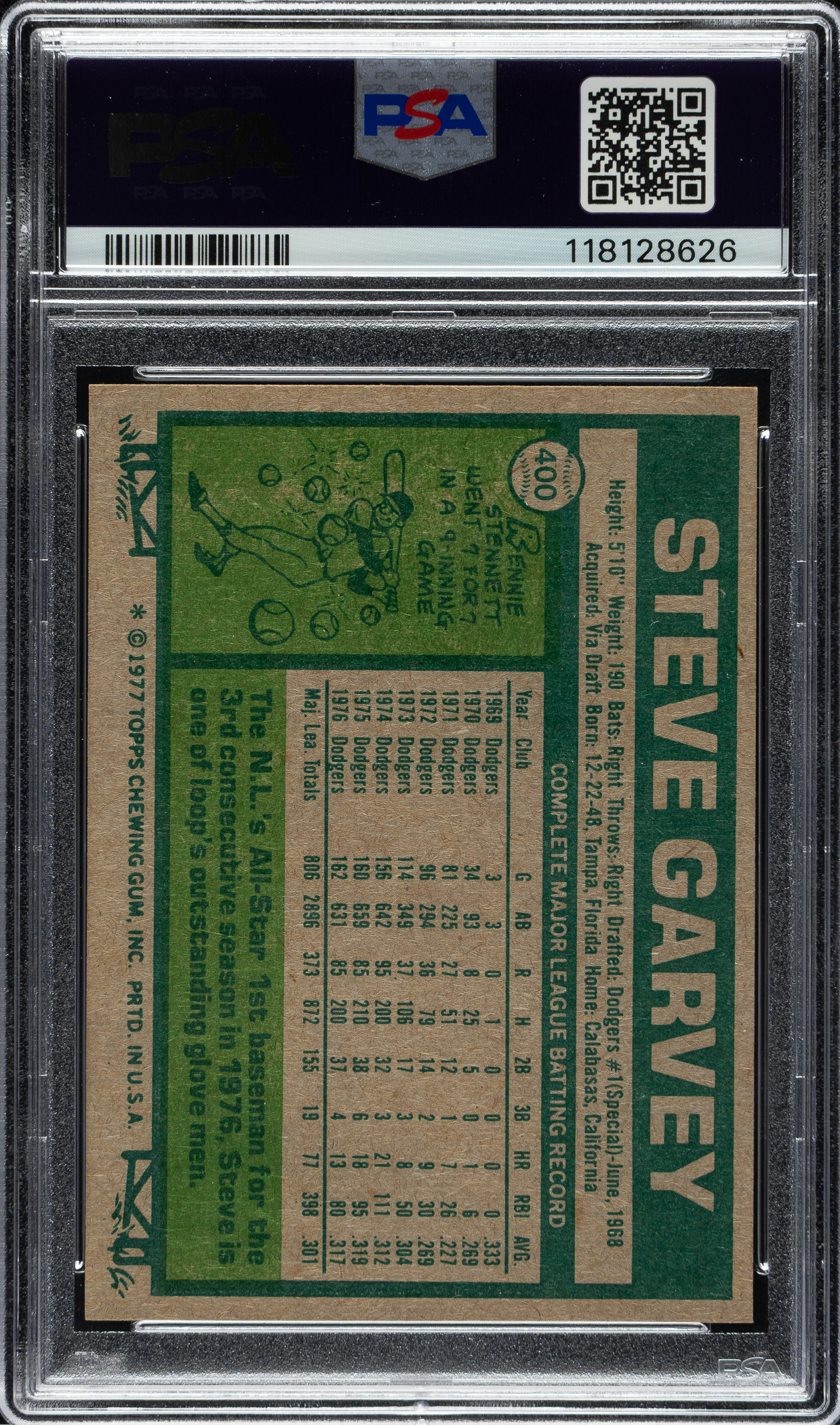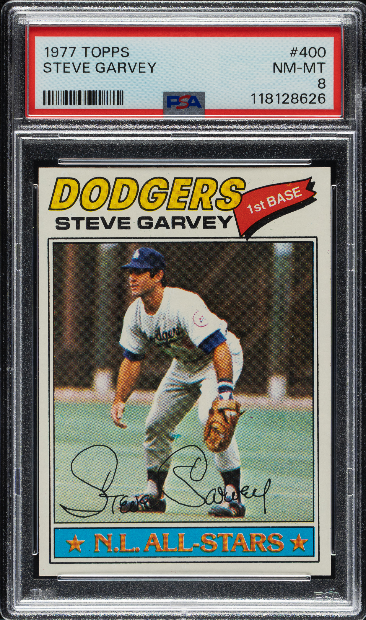 Lot # 2197: 1977 Topps #400 Steve Garvey All-Star PSA NM-MT 8