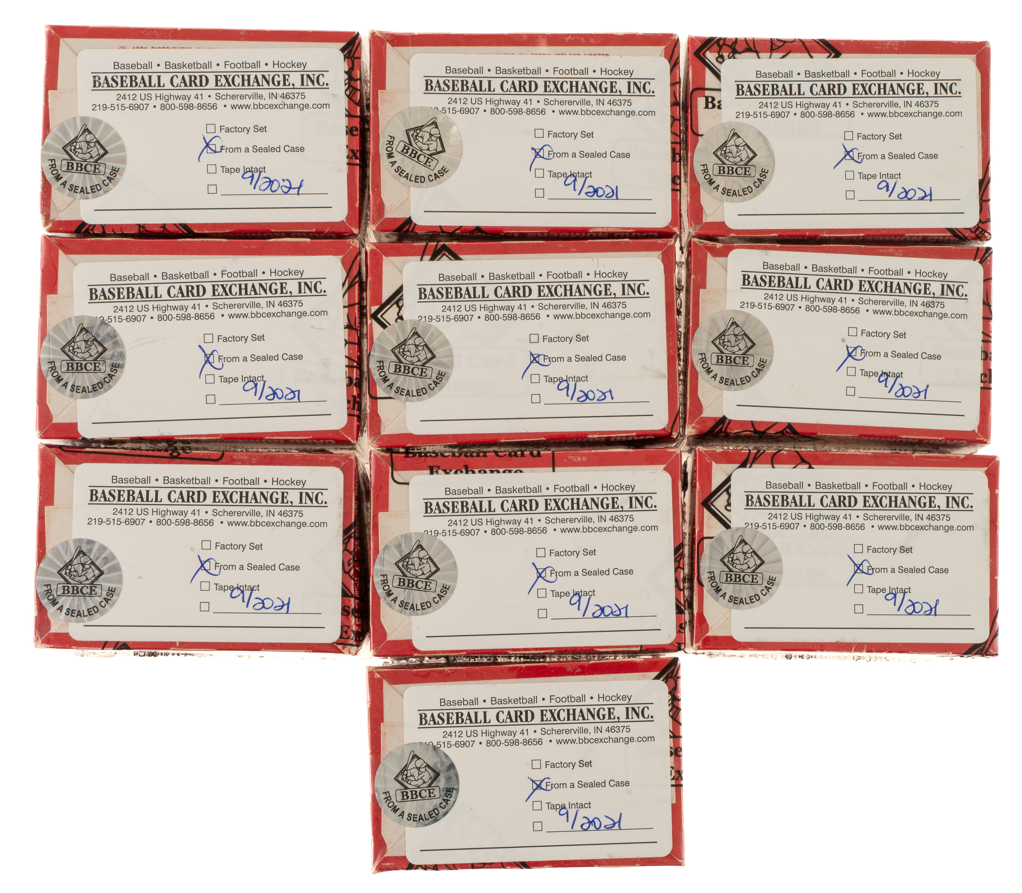 Each box comes shrink-wrapped by Baseball Card Exchange (owned by Steve Hart, the foremost expert on unopened material) and is noted to have originated from a sealed case (FASC designation on label). Total: 10 boxed sets. The size/weight of this item requires that there will be an additional shipping charge for this lot.
