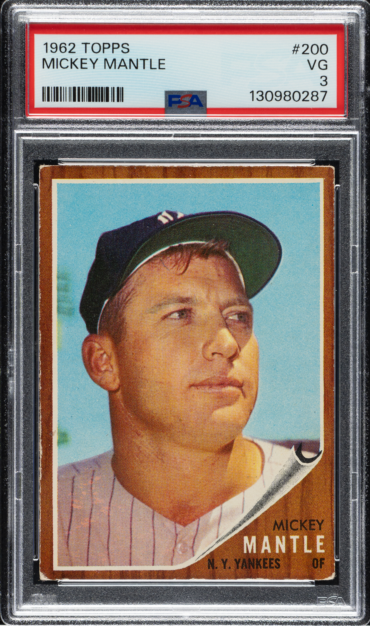 Lot # 1901: 1962 Topps #200 Mickey Mantle PSA VG 3