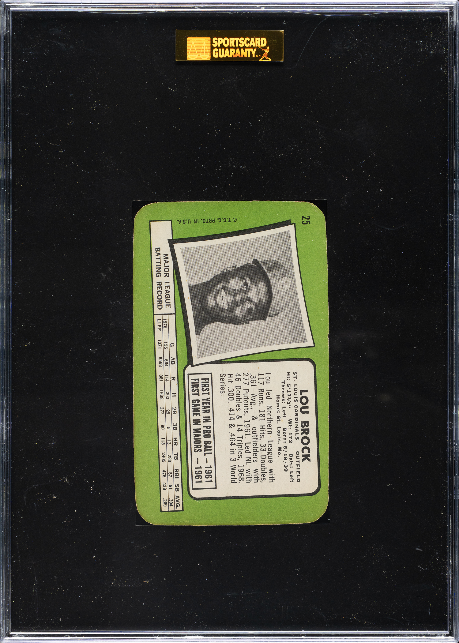 Graded MINT 96 by SGC. St. Louis Cardinals Hall of Famer Lou Brock.