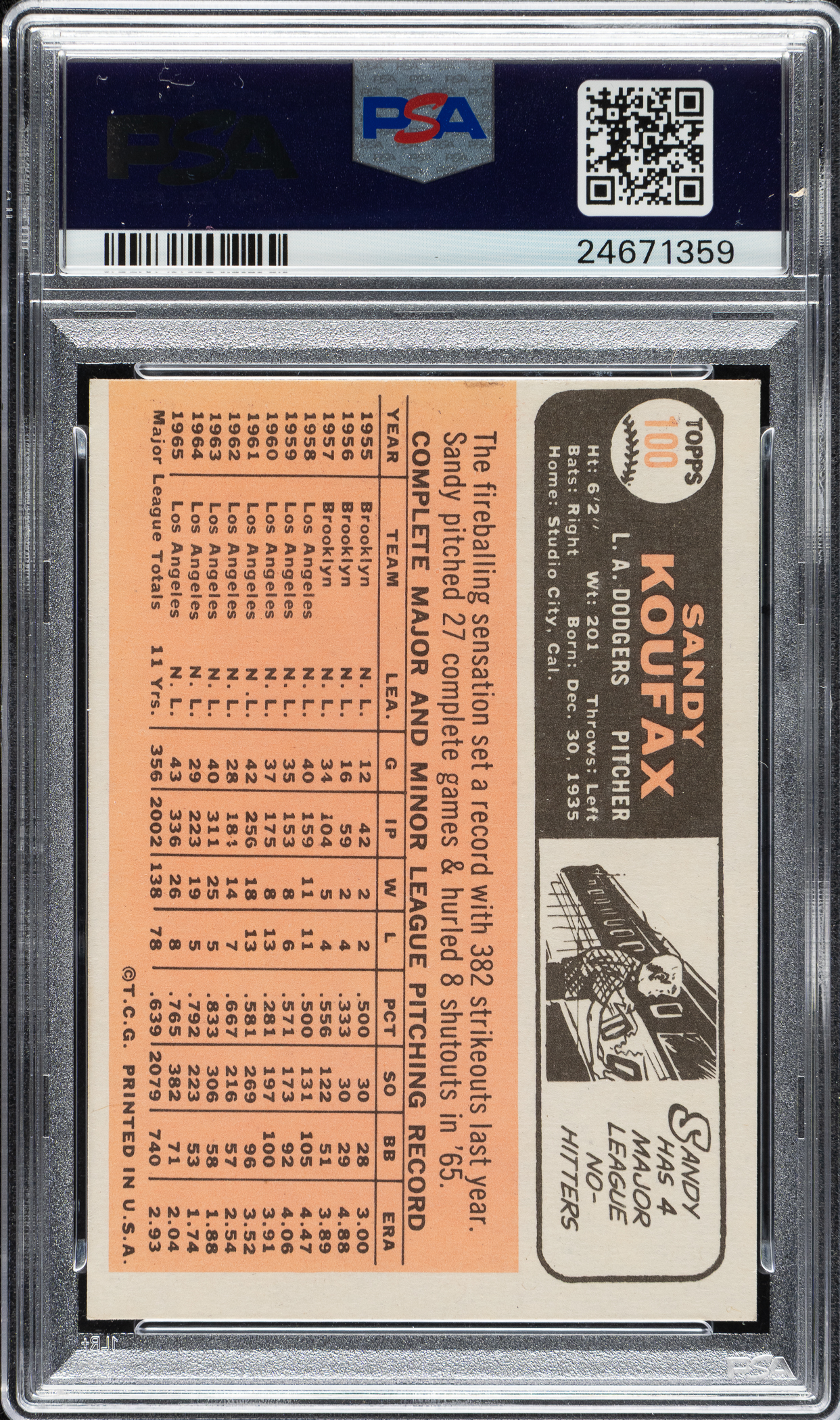 Graded NM-MT 8 by PSA. Los Angeles Hall of Famer Sandy Koufax.