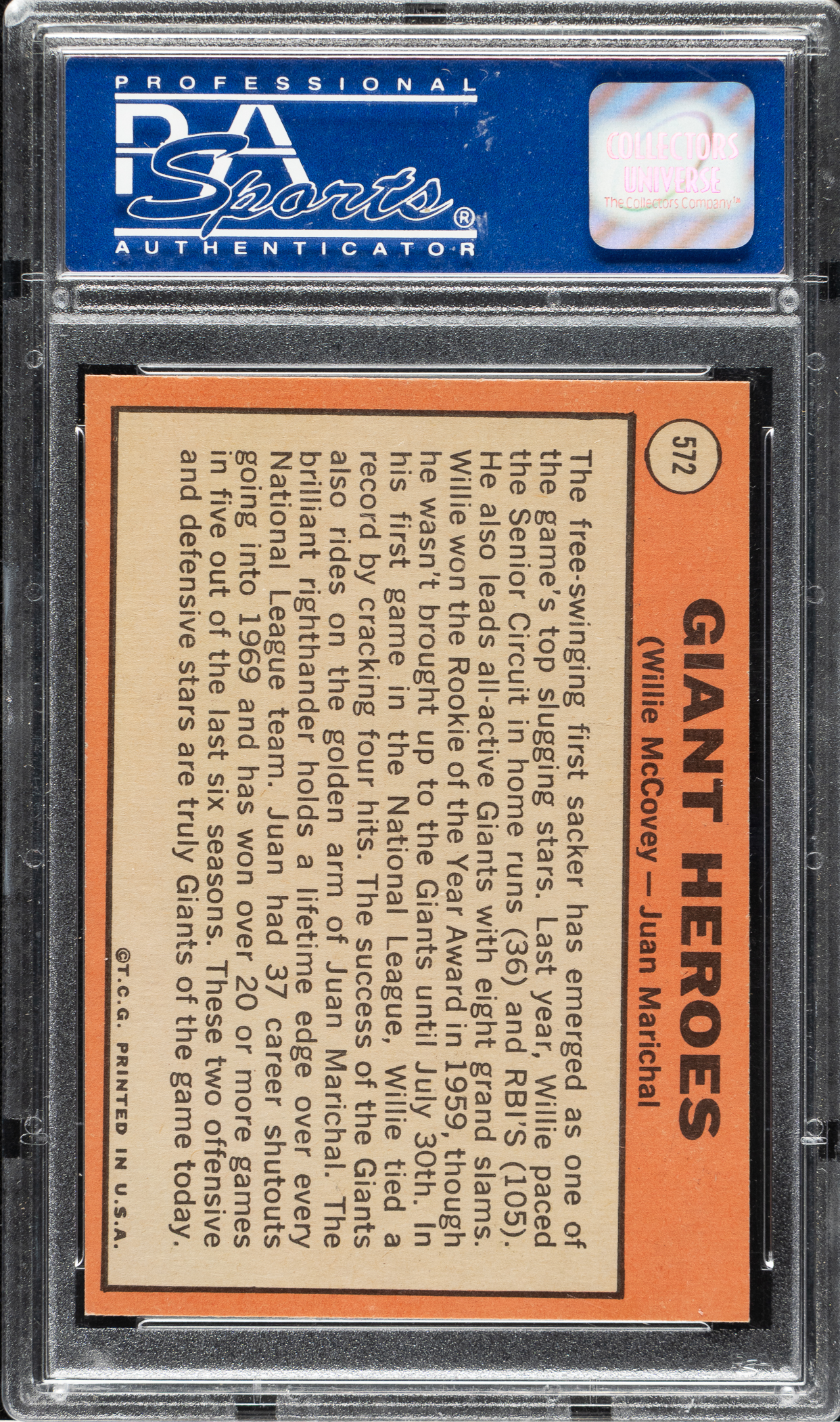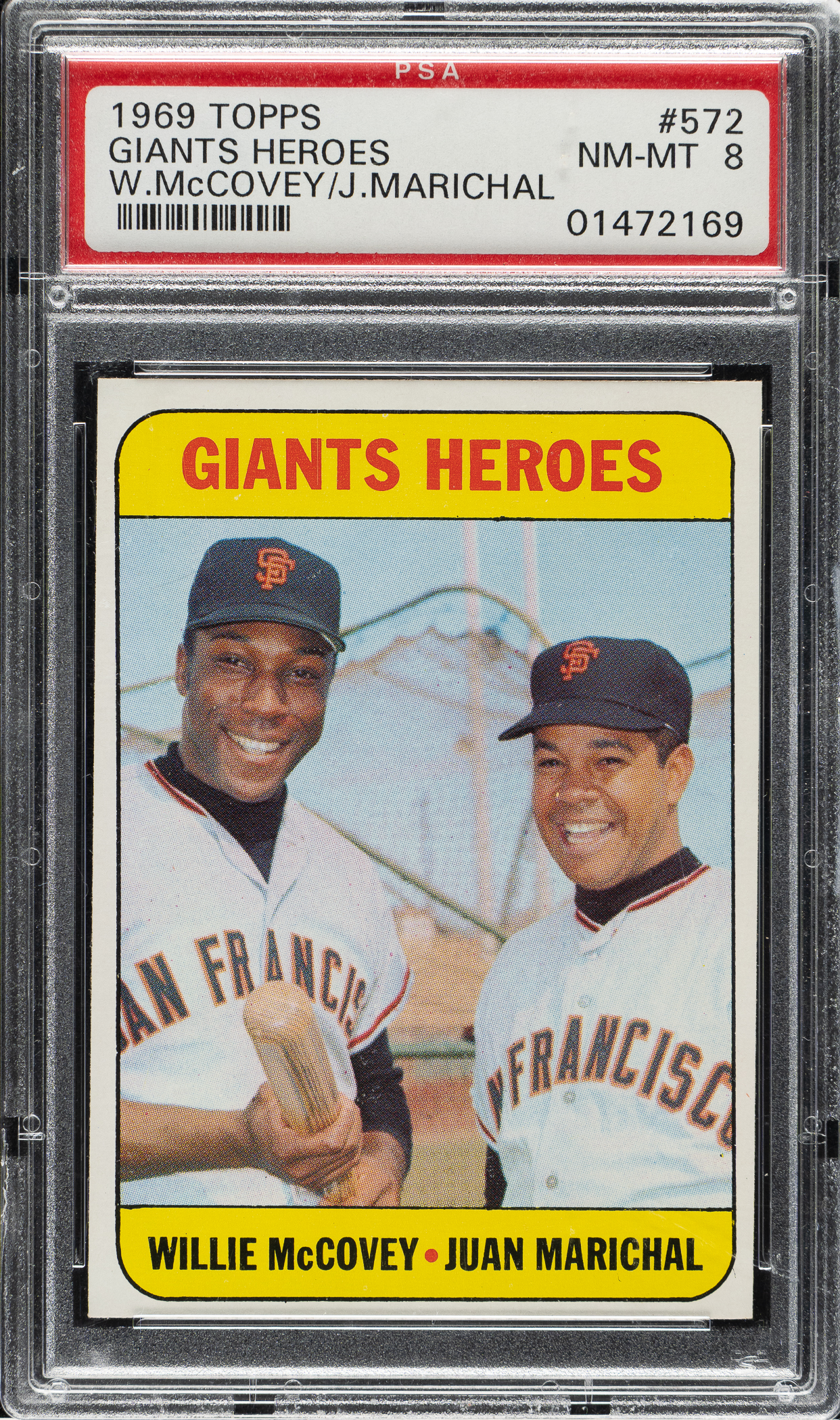 Graded NM-MT 8 by PSA. San Francisco Giants Hall of Famers Willie McCovey and Juan Marichal.
