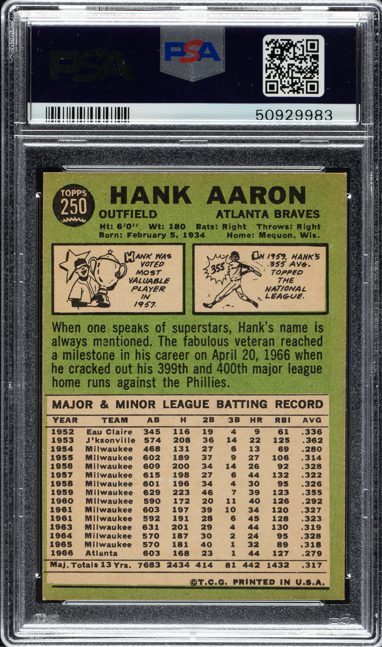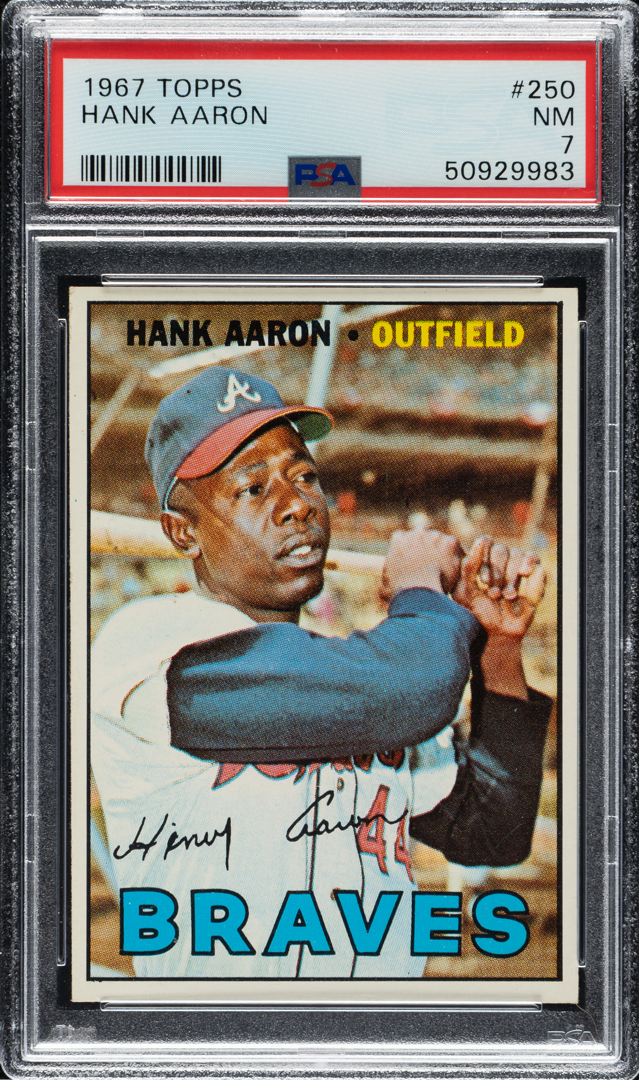 Graded NM 7 by PSA. Atlanta Braves Hall of Famer Hank Aaron.