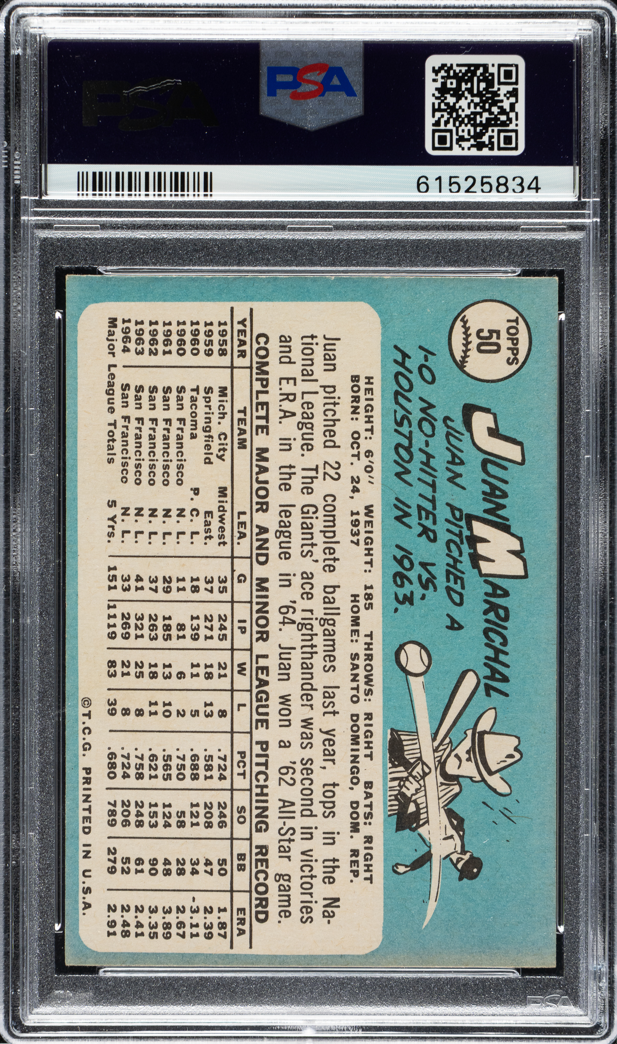 Graded EX 5 by PSA. San Francisco Giants Hall of Famer Juan Marichal.