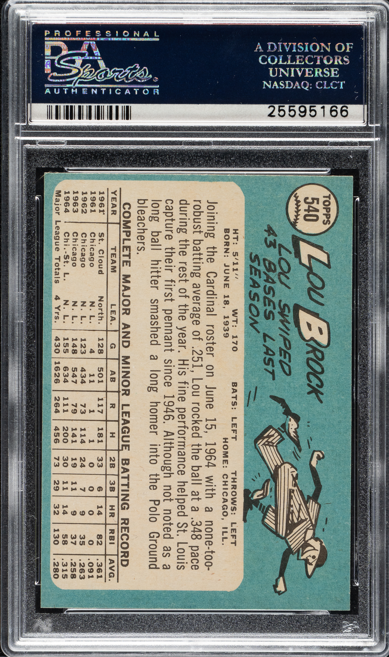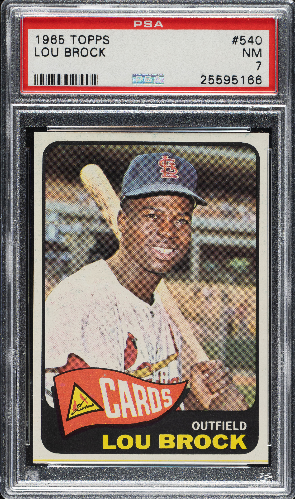 Graded NM 7 by PSA. St. Louis Cardinals Hall of Famer Lou Brock.