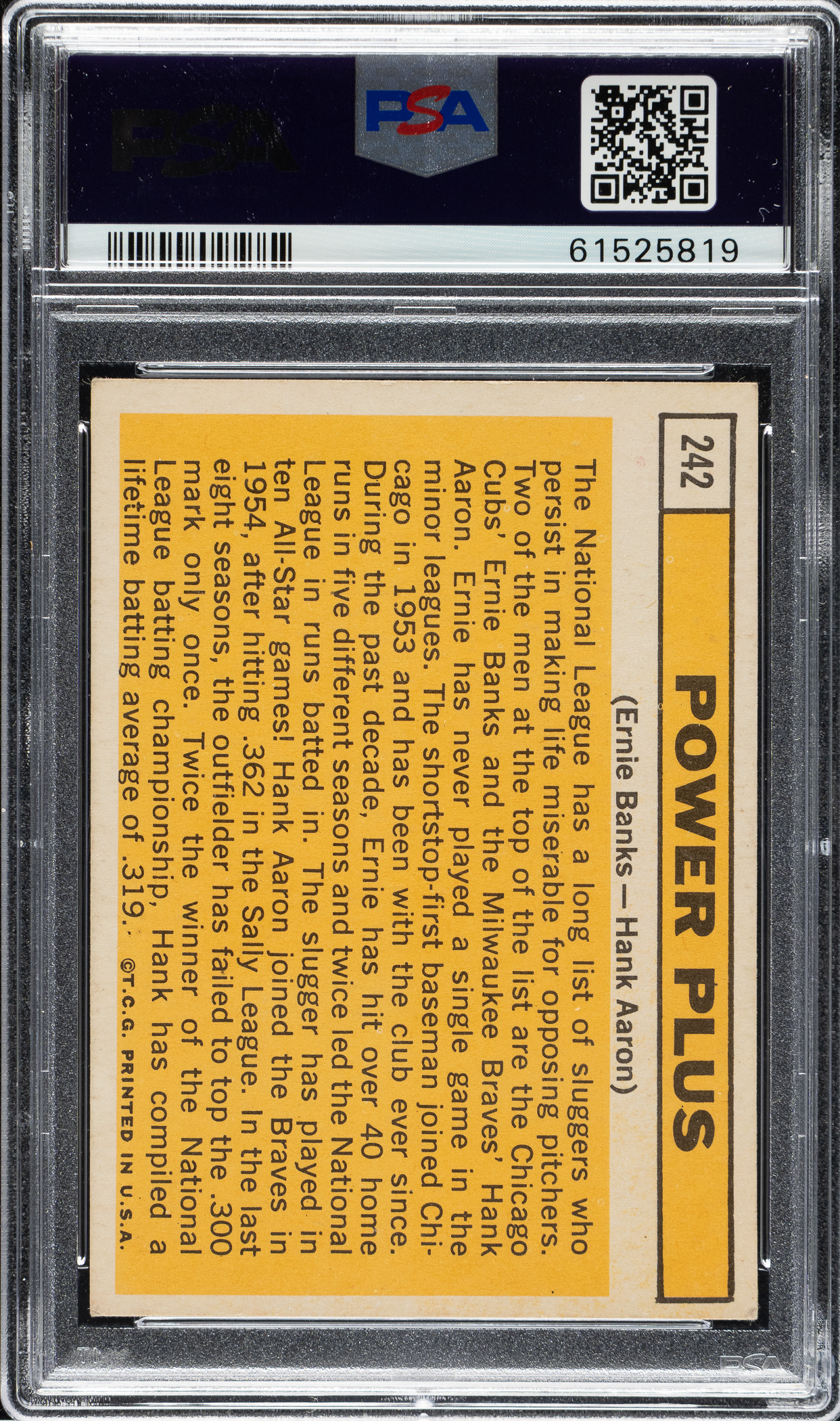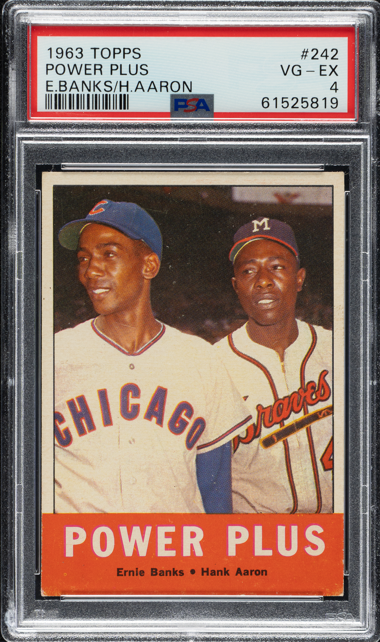 Graded VG-EX 4 by PSA. Chicago Cubs and Milwaukee Braves Hall of Famers Ernie Banks and Hank Aaron.