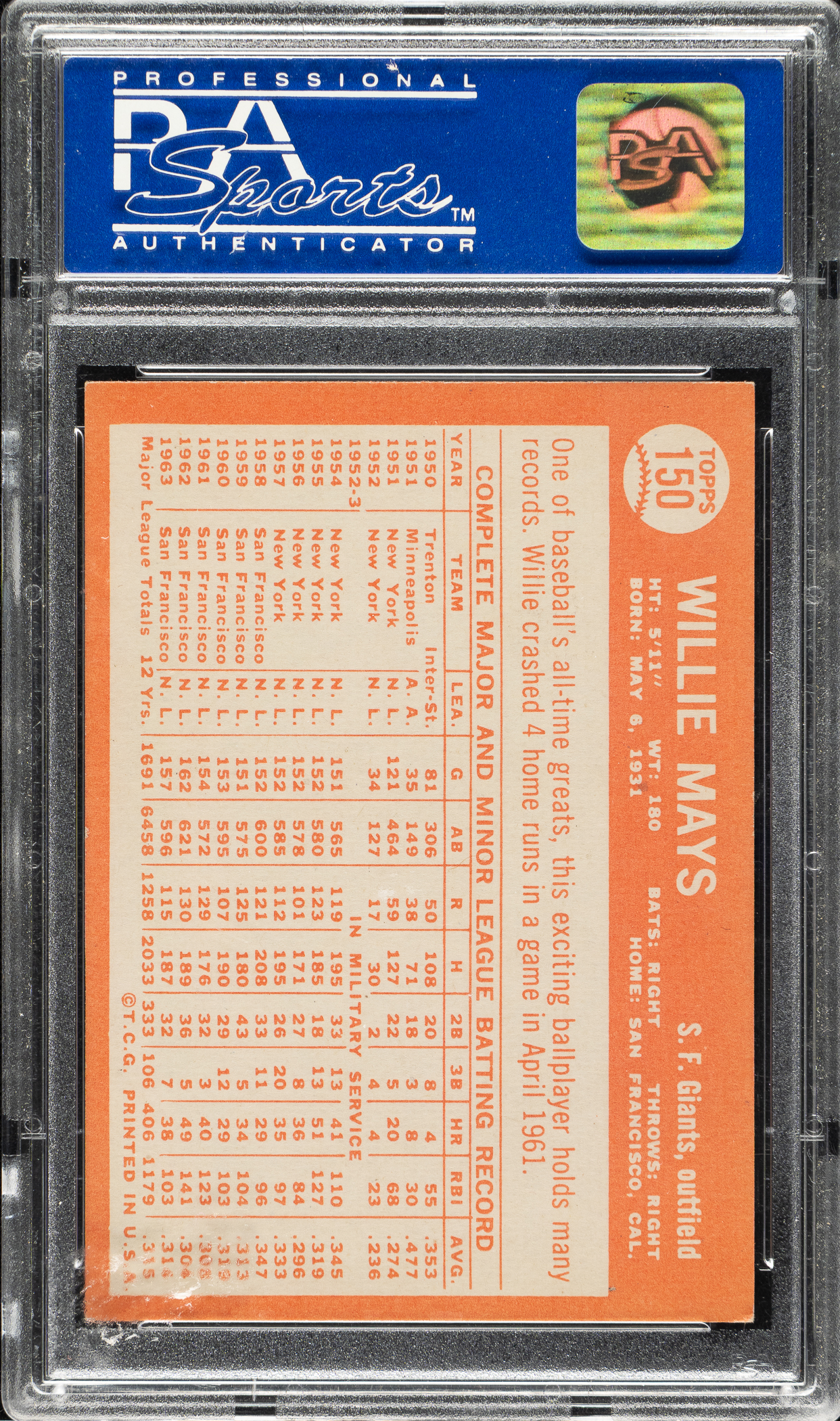 Lot # 1960: 1964 Topps #150 Willie Mays PSA NM 7