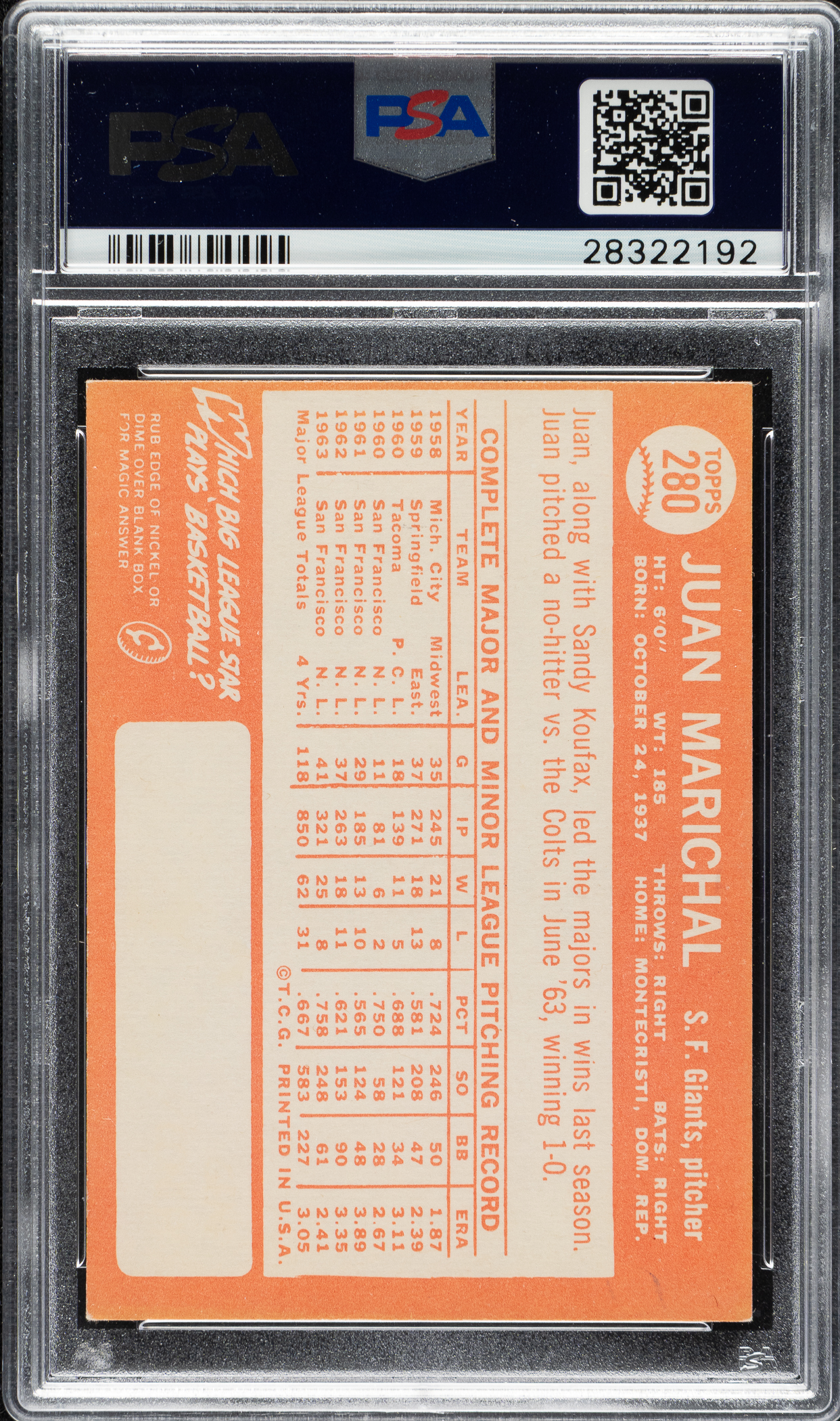 Graded NM 7 by PSA. San Francisco Giants Hall of Famer Juan Marichal.