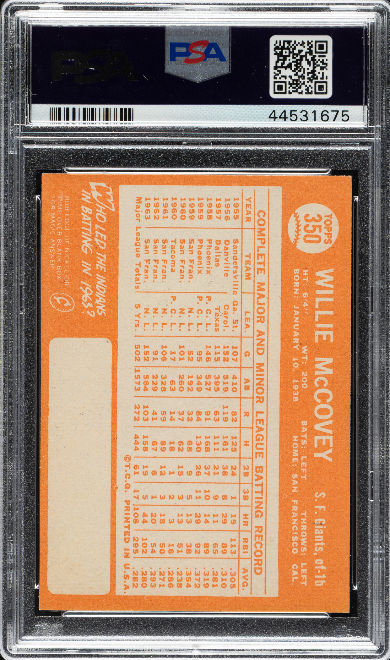 Lot # 1974: 1964 Topps #350 Willie McCovey PSA NM-MT 8
