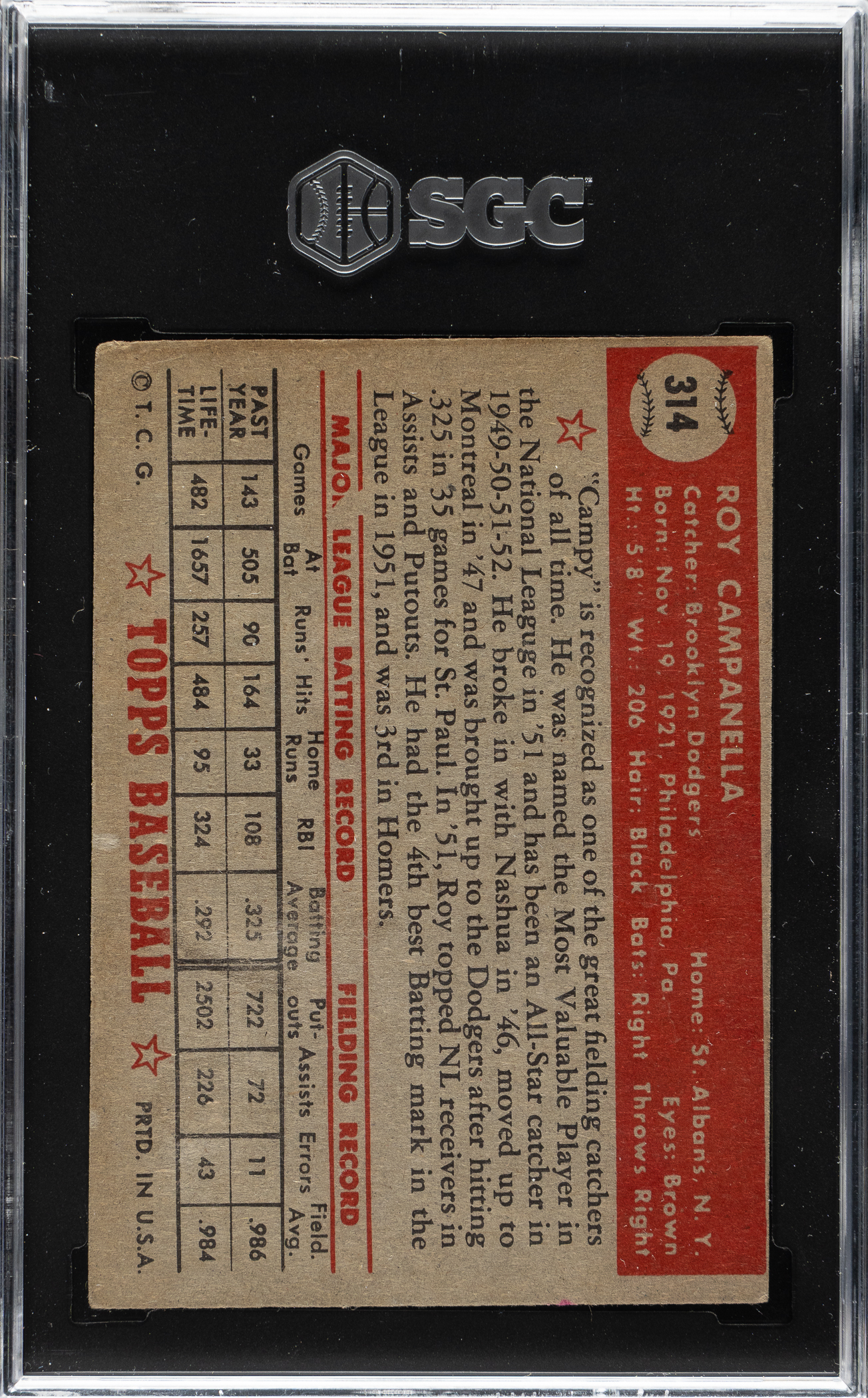 Graded VG 3 by SGC. Brooklyn Dodgers Hall of Famer Roy Campanella.