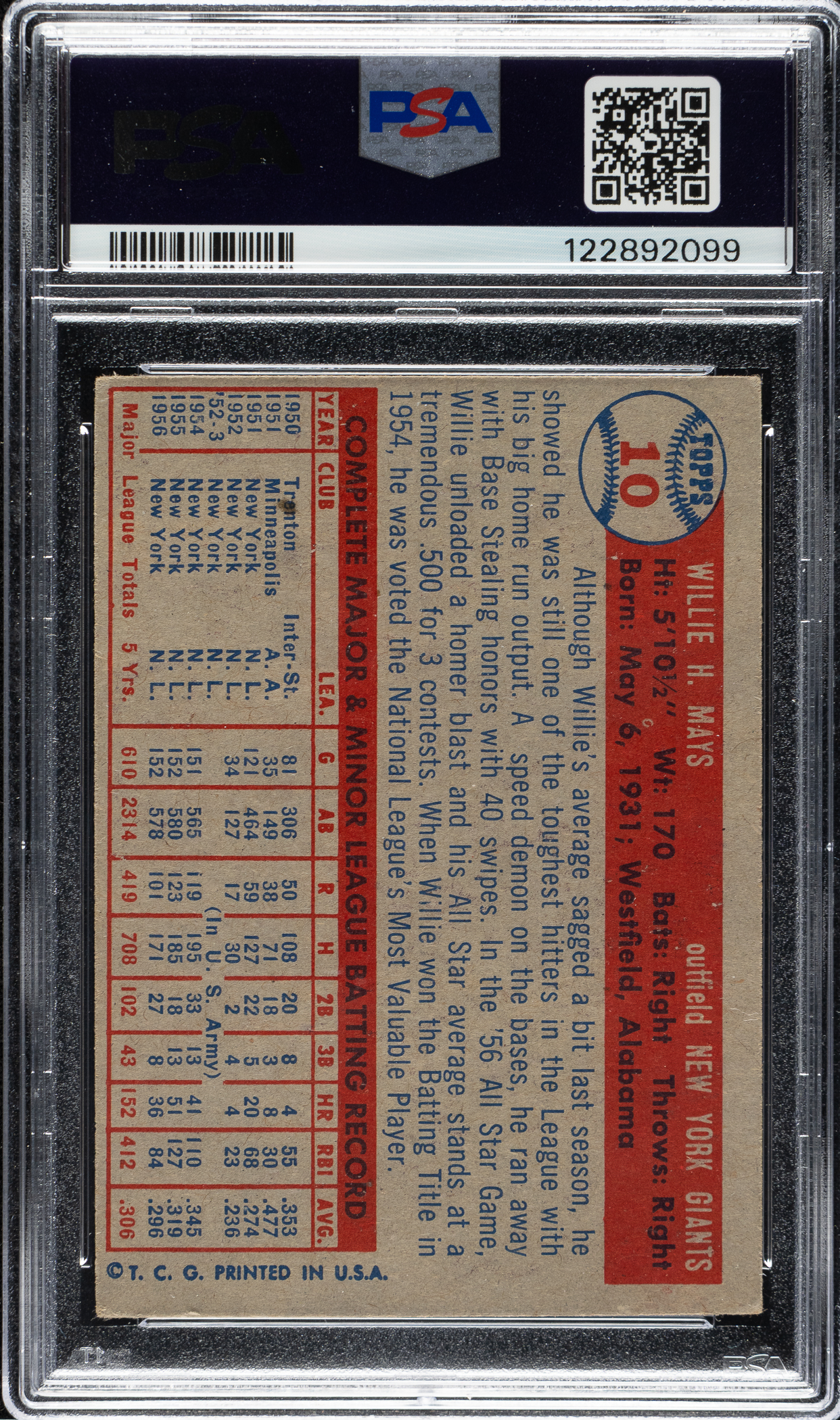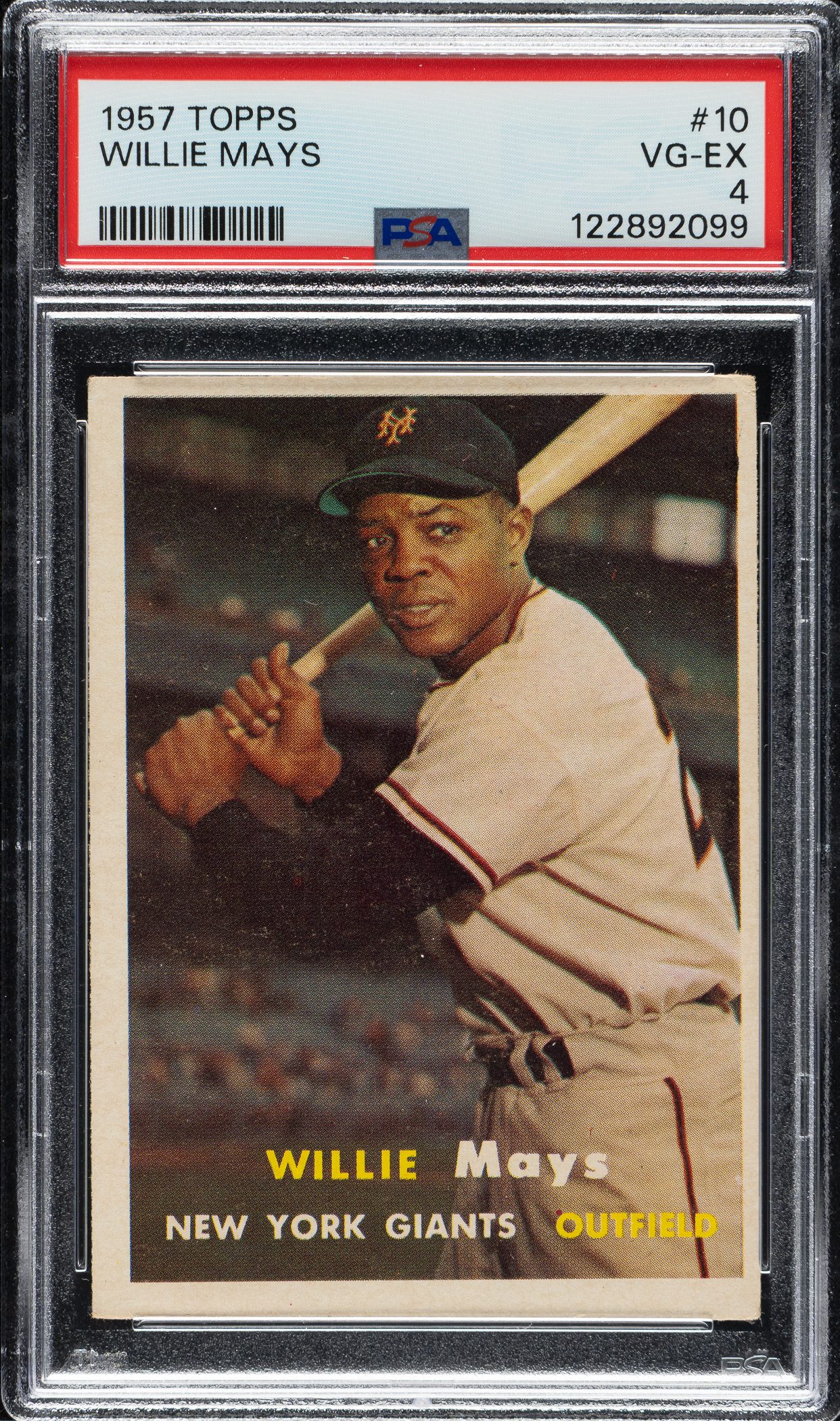 Graded VG-EX 4 by PSA. New York Giants Hall of Famer Willie Mays.