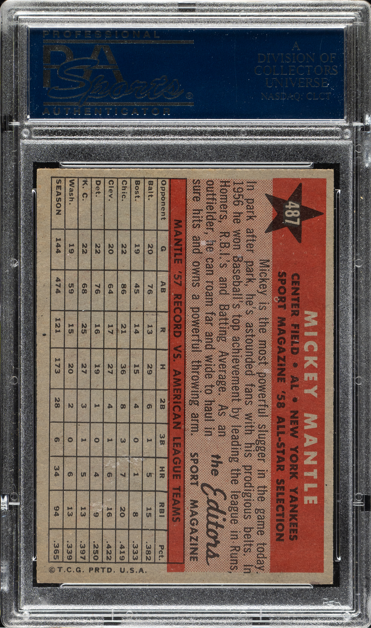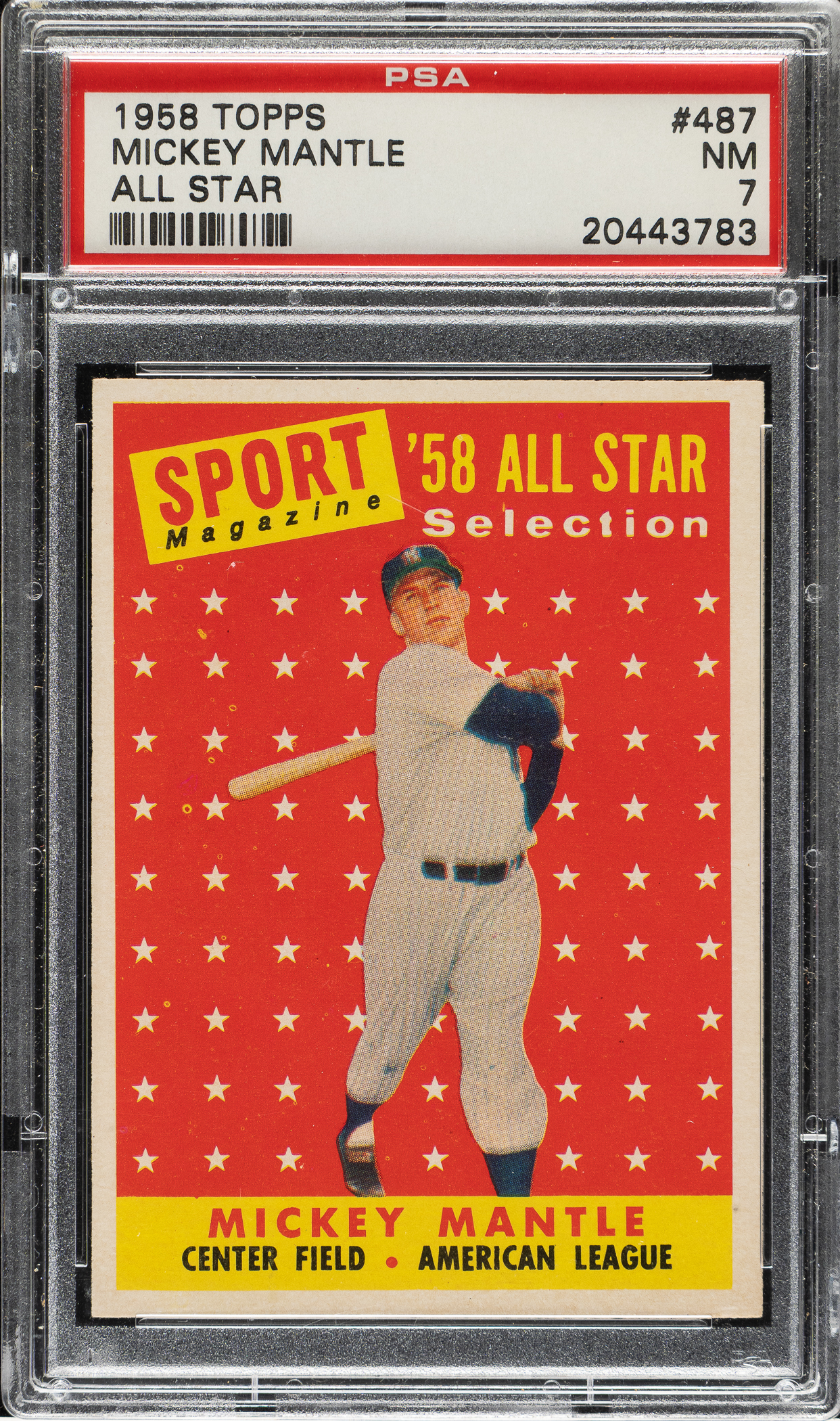 Lot # 1762: 1958 Topps #487 Mickey Mantle All-Star PSA NM 7