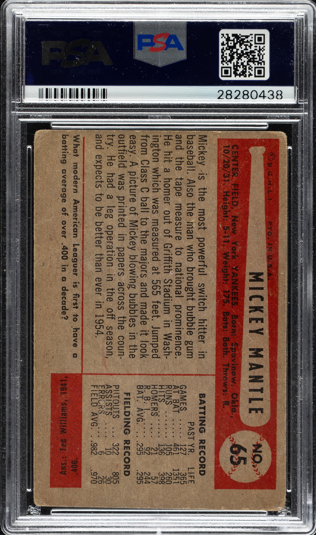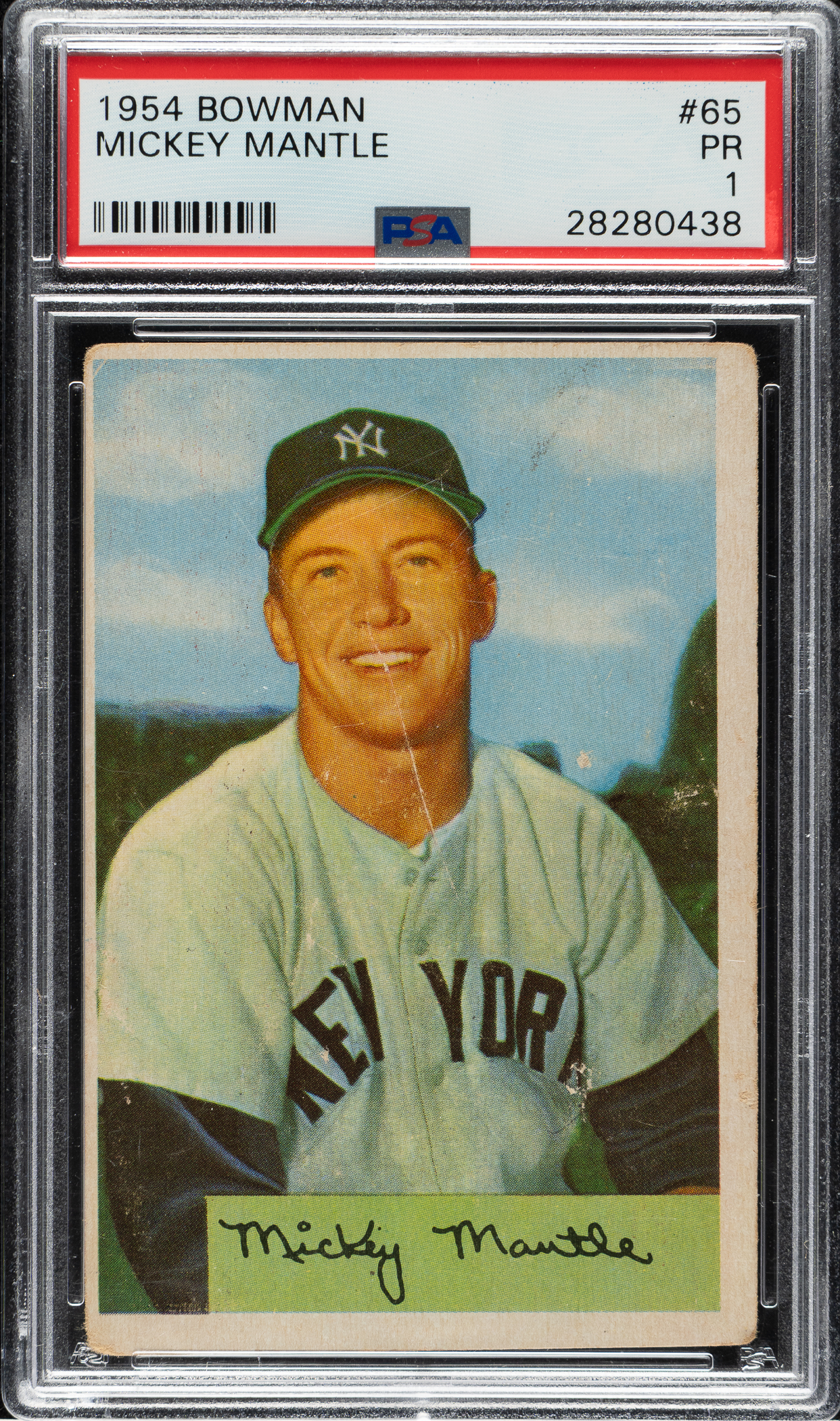 Lot # 1570: 1954 Bowman #65 Mickey Mantle PSA POOR 1