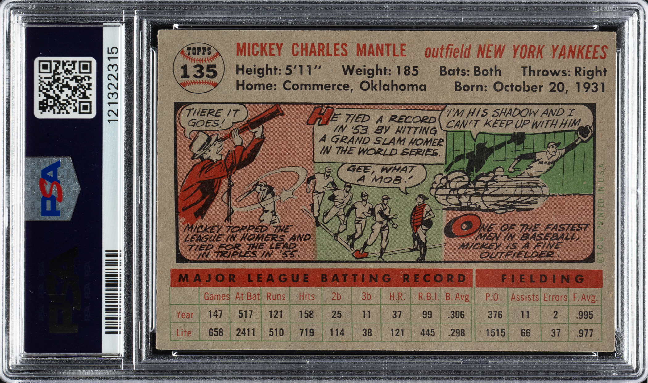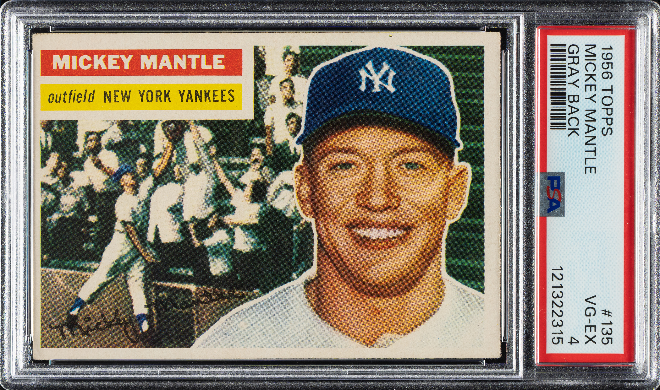 Lot # 1654: 1956 Topps #135 Mickey Mantle Gray Back PSA VG-EX 4