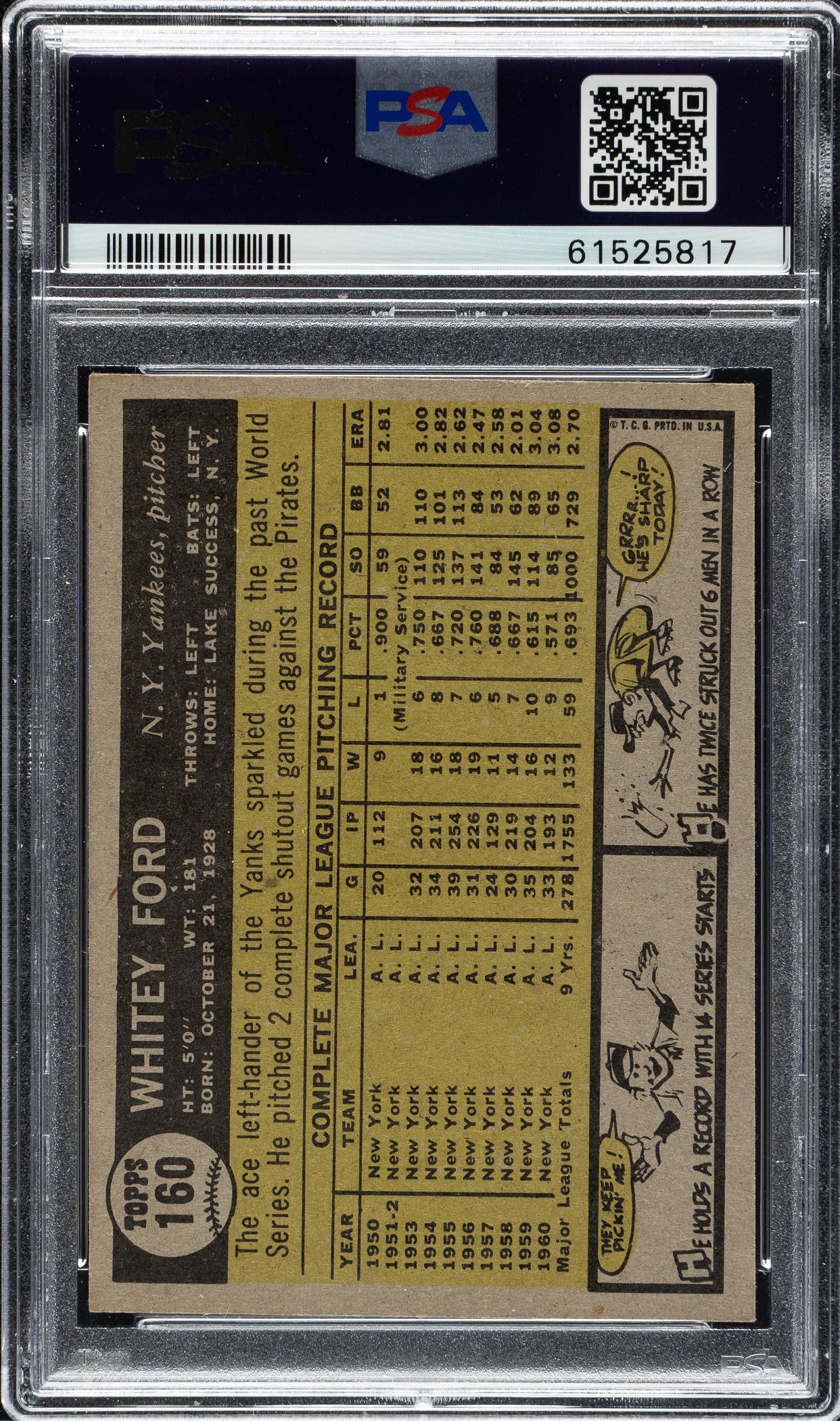 Graded EX-MT 6 by PSA. New York Yankees Hall of Famer Whitey Ford.