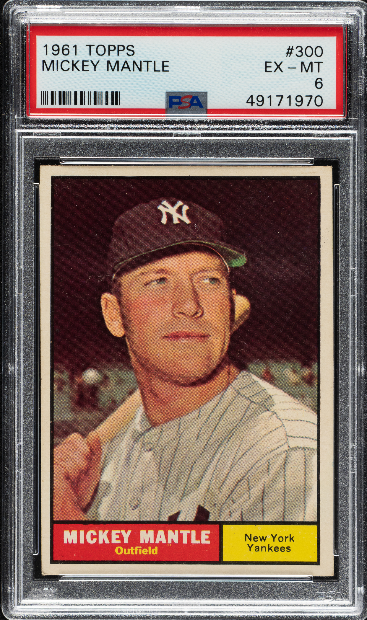 Lot # 1870: 1961 Topps #300 Mickey Mantle PSA EX-MT 6