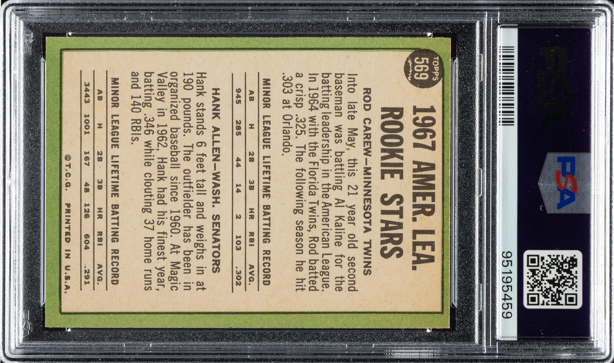 Graded NM 7 by PSA. Minnesota Twins Hall of Famer Rod Carew.