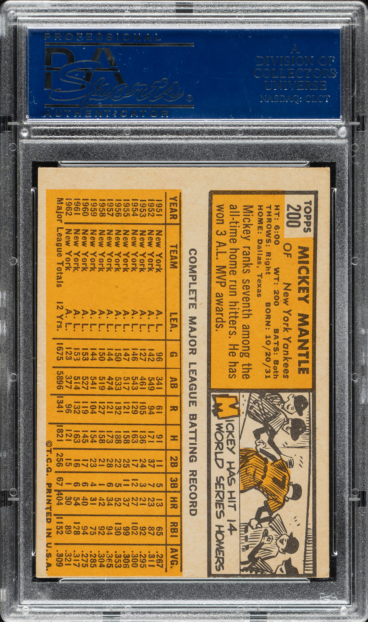Lot # 1929: 1963 Topps #200 Mickey Mantle PSA VG-EX 4